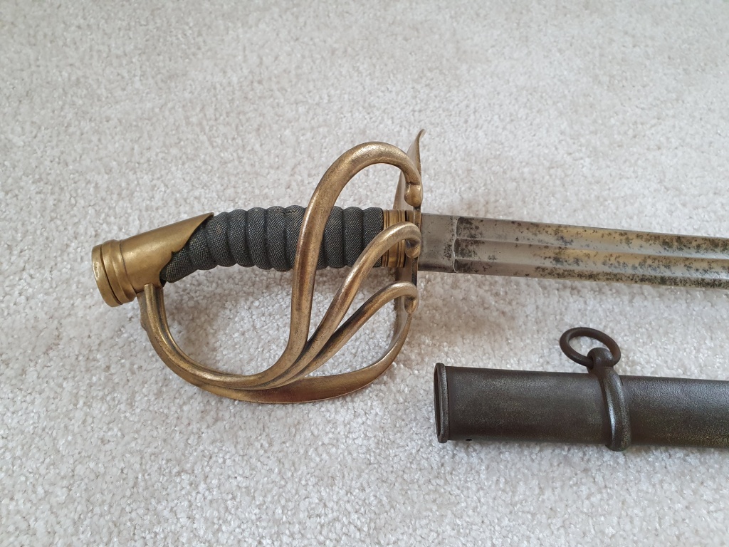 der Degen ist m.E. der für den Sie ihn halten, gratuliere! Der Revisionsstempel „G“(?) mit Krone auf dem Klingenrücken befindet sich auch auf dem Gefäss. Die militärfiskalischen Stempel mit Jahreszahl wurden bei den Waffen für diese Dienstgradgruppe erst ab 1880 geschlagen.