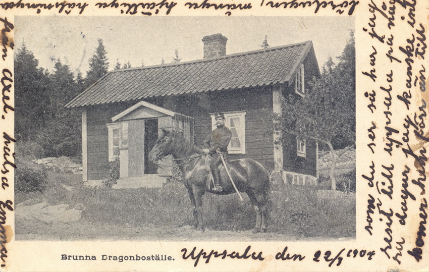 Auf der vorliegenden Karte kann man lesen: Brunna Dragonerboställe. Ganz wichtig ist auch der Ort wo sie abgeschickt wurde - Uppsala 1904.