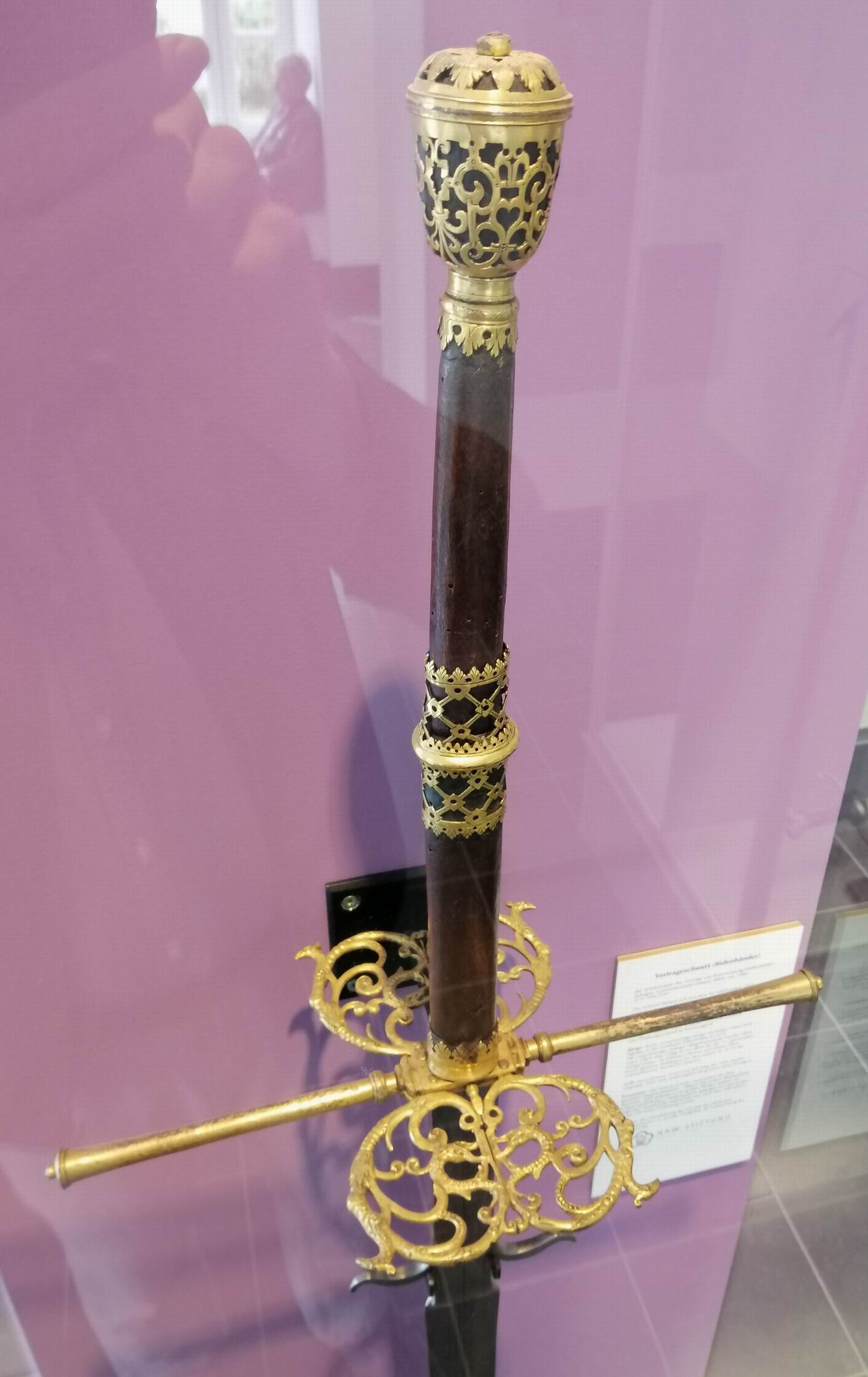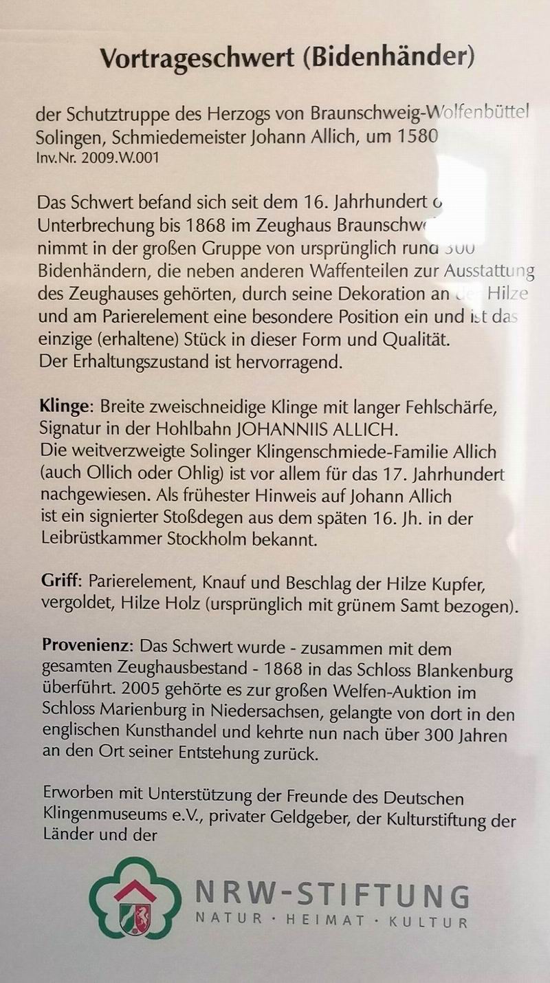 Vortrageschwert (Bidenhänder) aus dem Bestand des Klingenmuseums Solingen. Hinter dem Begriff Vortrageschwert vermute ich eine Art "Zeremonialwaffe", ähnlich den Gerichtsschwertern, getragen wie bei einer Prozession.