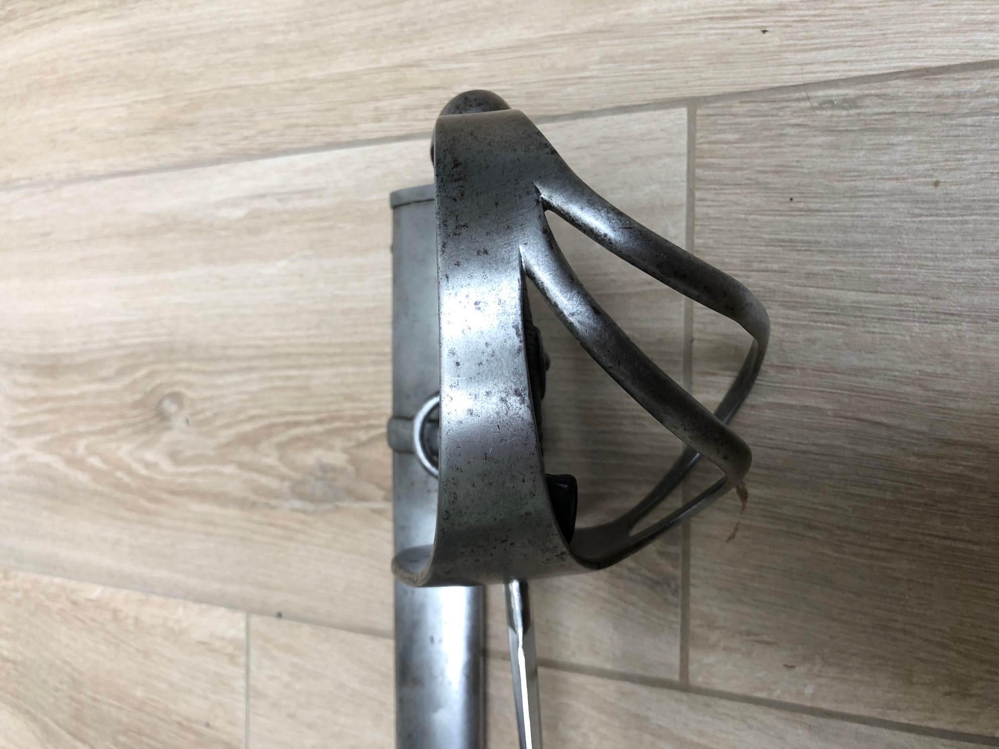 Der Säbel scheint gebraucht und das Fehlen jeglicher Regimentszeichen.