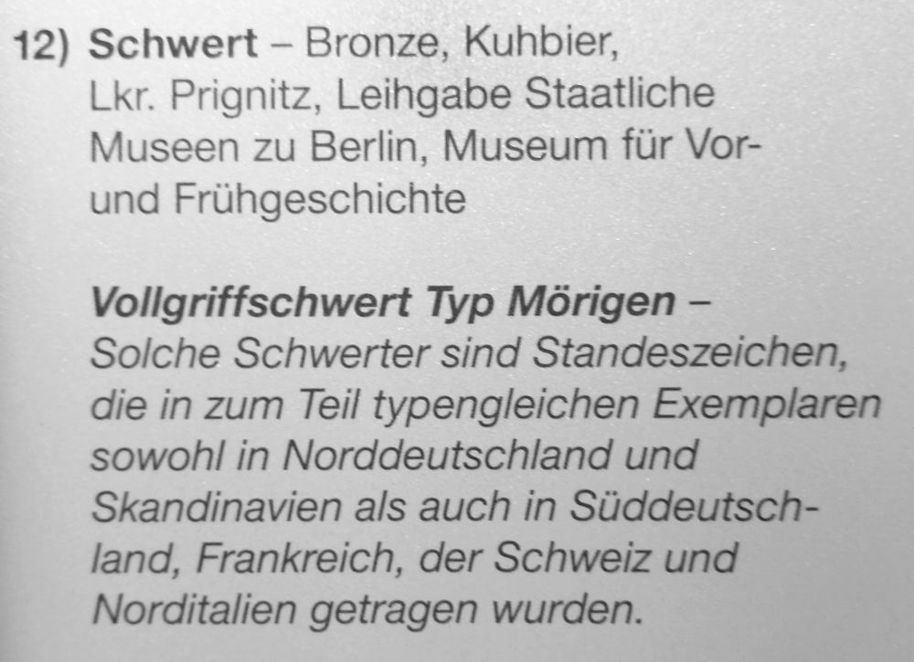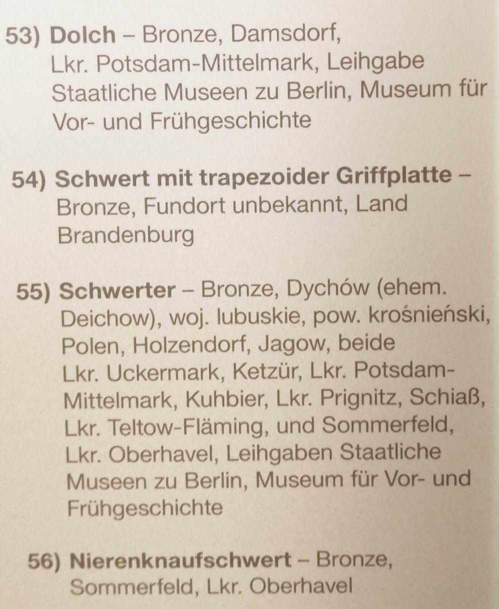 zeigt in seiner Dauerausstellung "Bronzezeit" eine Vielfalt an Schwertern. Fundorte sind Polen und das Land Brandenburg.