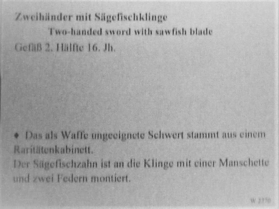 Zweihänder mit Sägefischklinge, 2. Hälfte 16. Jahrhundert