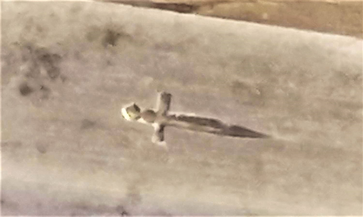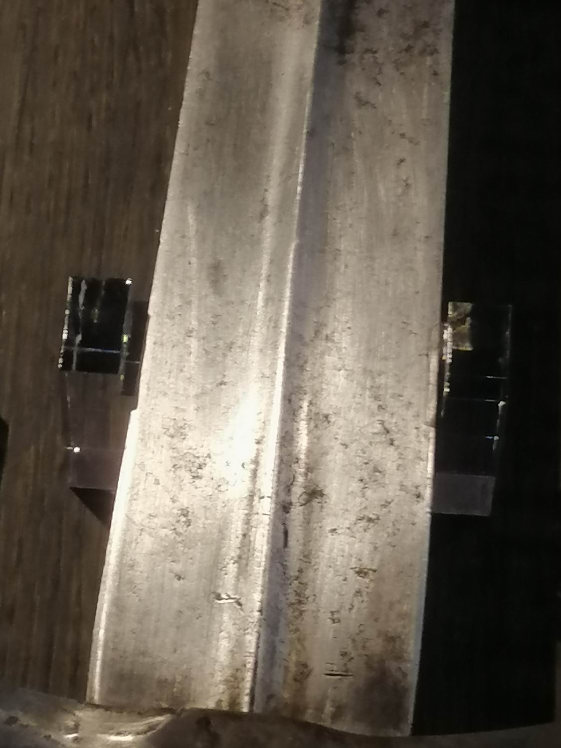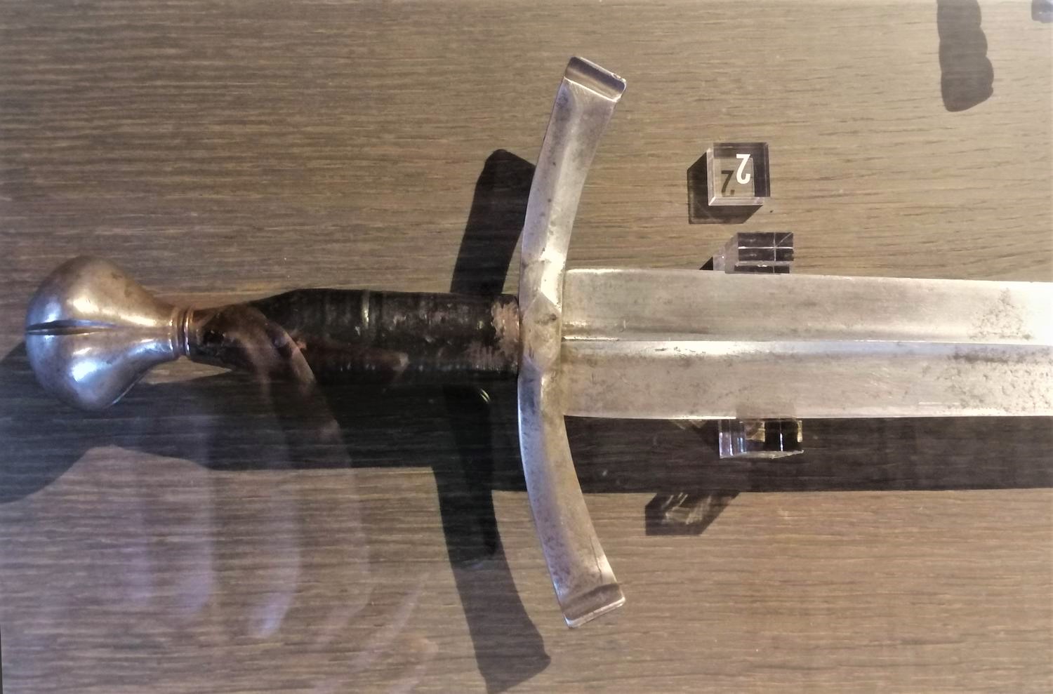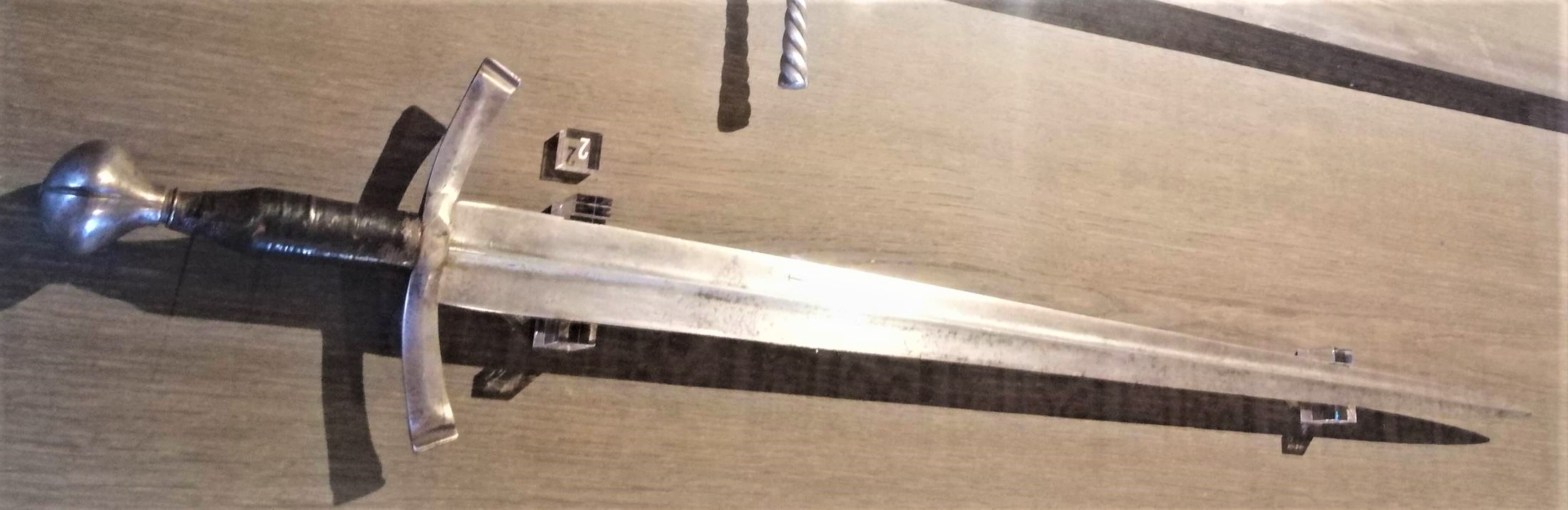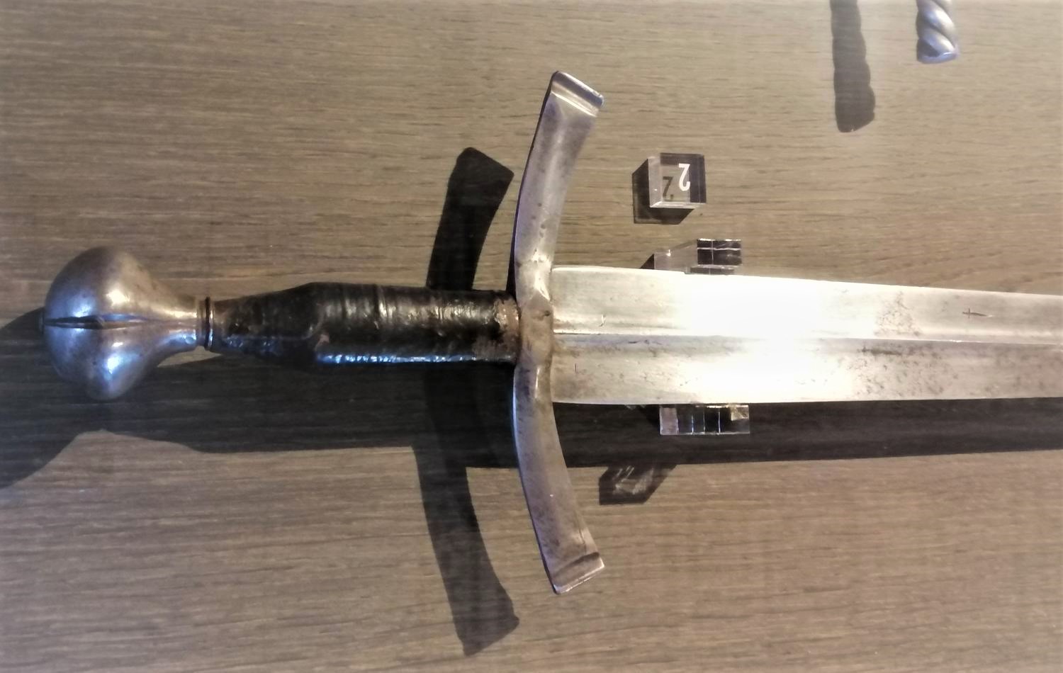 Klinge mit Schmiedemarke und deutlich profiliertem Mittelgrat.