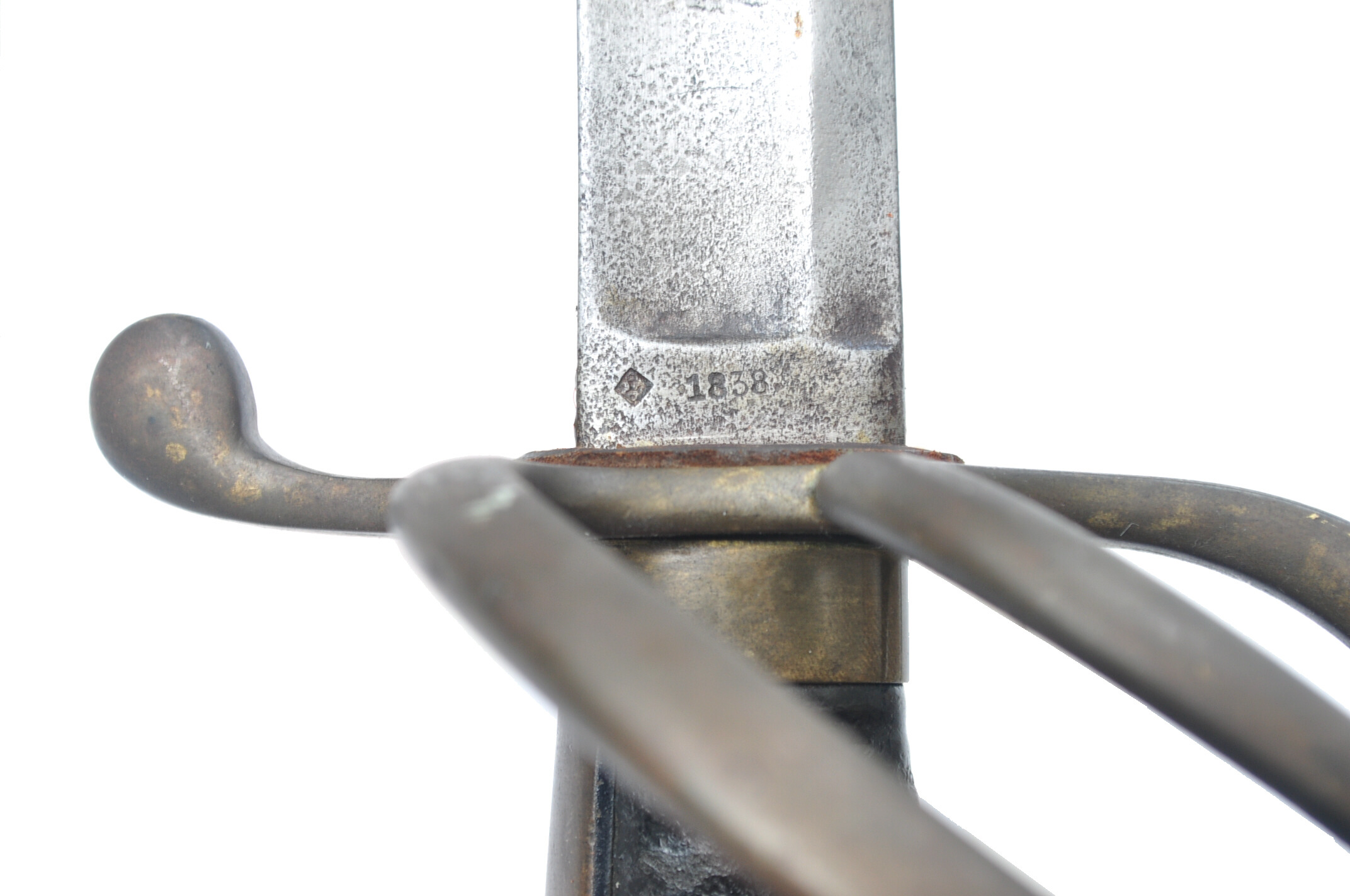 Jahreszahl 1838, daneben belgische Inspektionsmarke in Raute auf der Fehlschärfe rechts