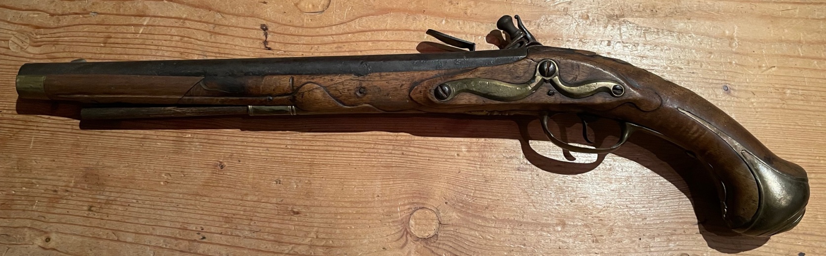 Wo man nun die ganze Waffe sieht, darf man nicht mehr von einer preußischen Kavallerie-Pistole „M. 1731“ schreiben. Eine solche ist es auf gar keinen Fall.