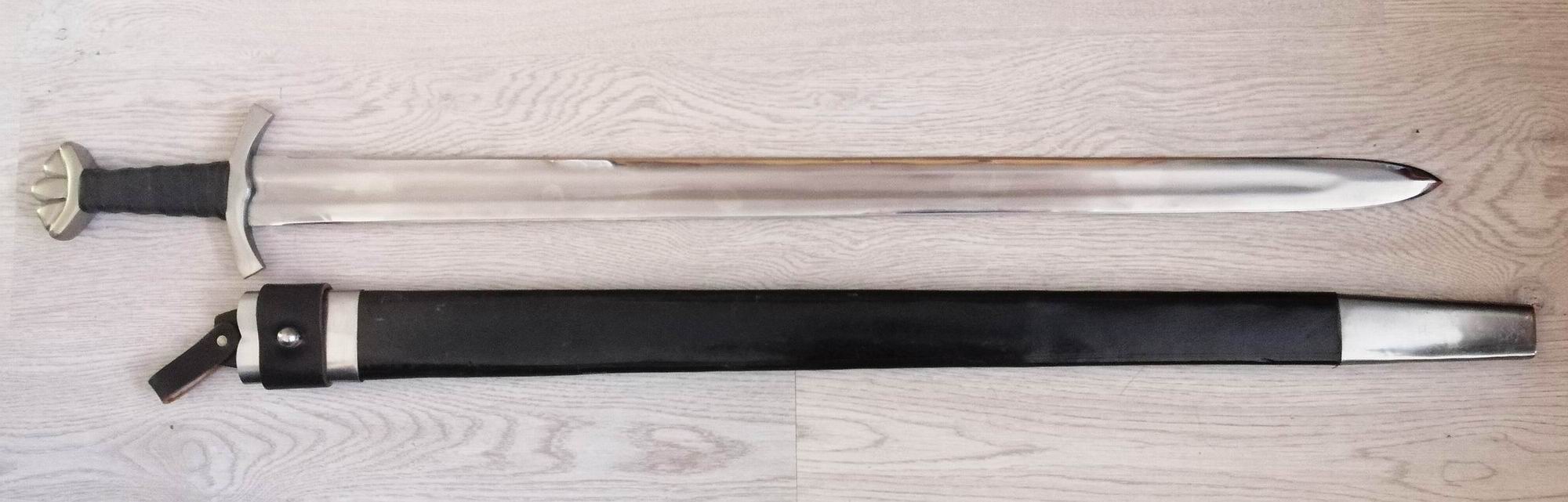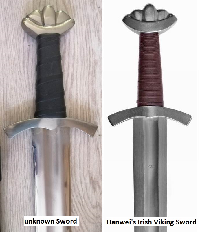 irischen Wikingerschwert von Hanwei, siehe beigefügtes Vergleichsfoto. Die Form von Knauf und Parierstange sind dem sehr ähnlich. Zitiert aus Hanwei`s Beschreibung: