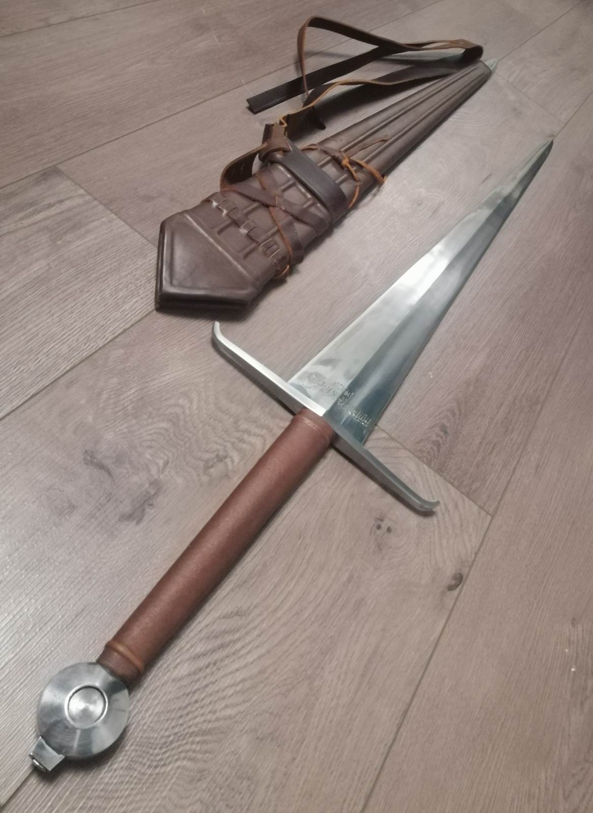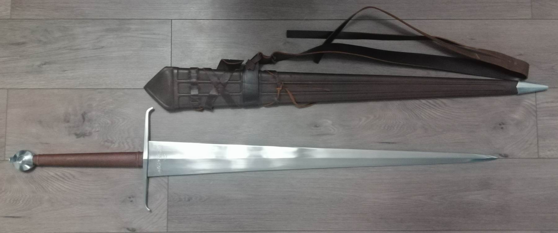 Die Klinge mit abgeflachtem Diamantquerschnitt hat eine breite Basis, eine sich stark verjüngende Spitze und ist handgeschmiedet. Es ist das zurzeit in der Anschaffung teuerste Schwert in meiner Sammlung, mit der breitesten und bei seiner Auslieferung wohl schärfsten Klinge.
