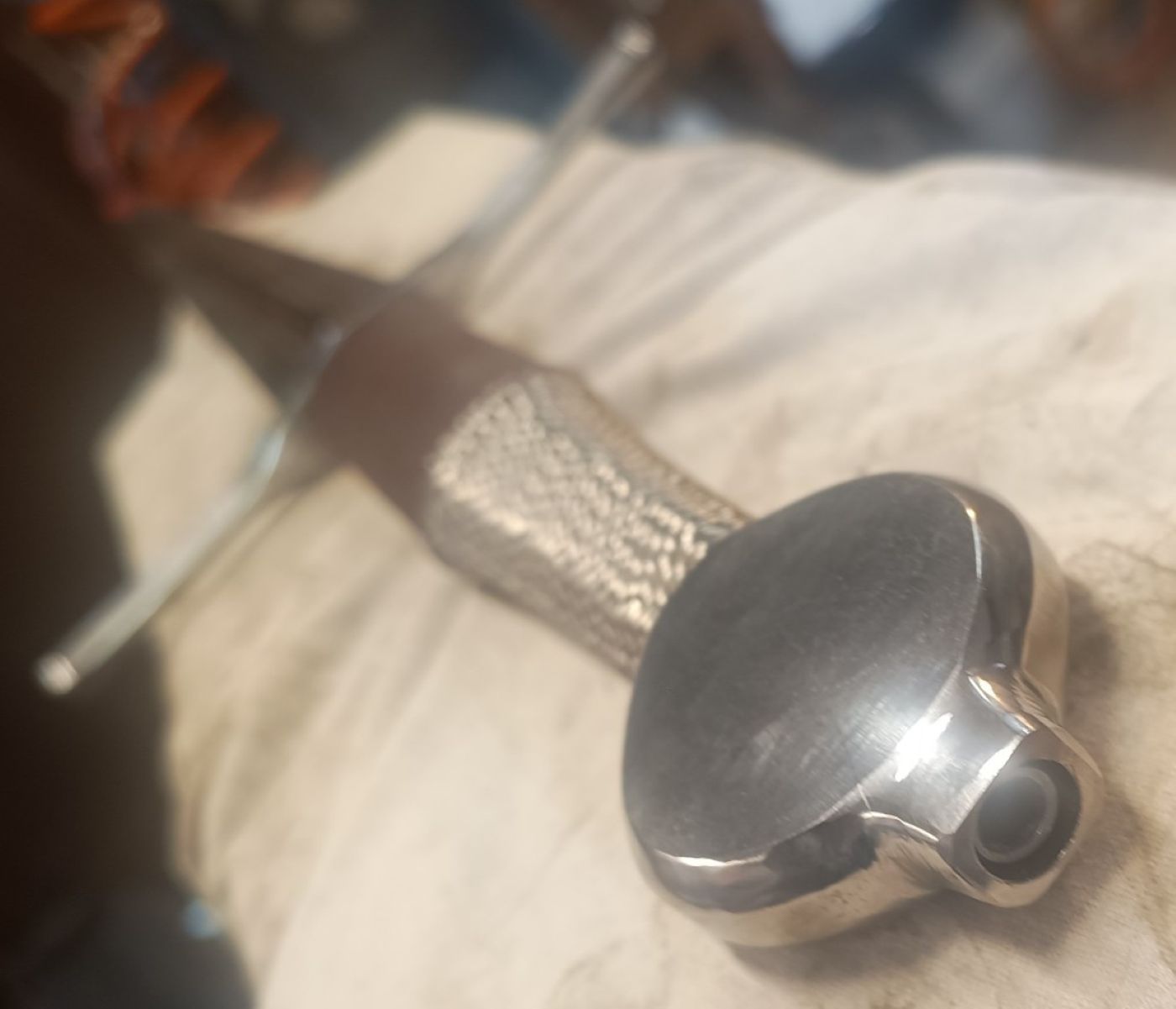 Zum Knauf: Der ist nicht schön! Er war in der Zwischenphase recht ansehnlich, aber dann hatte ich es mit dem Bandschleifer etwas übertrieben. Rückgängig kann ich es nicht machen, aber gelegentlich mal einen anderen anfertigen. :)