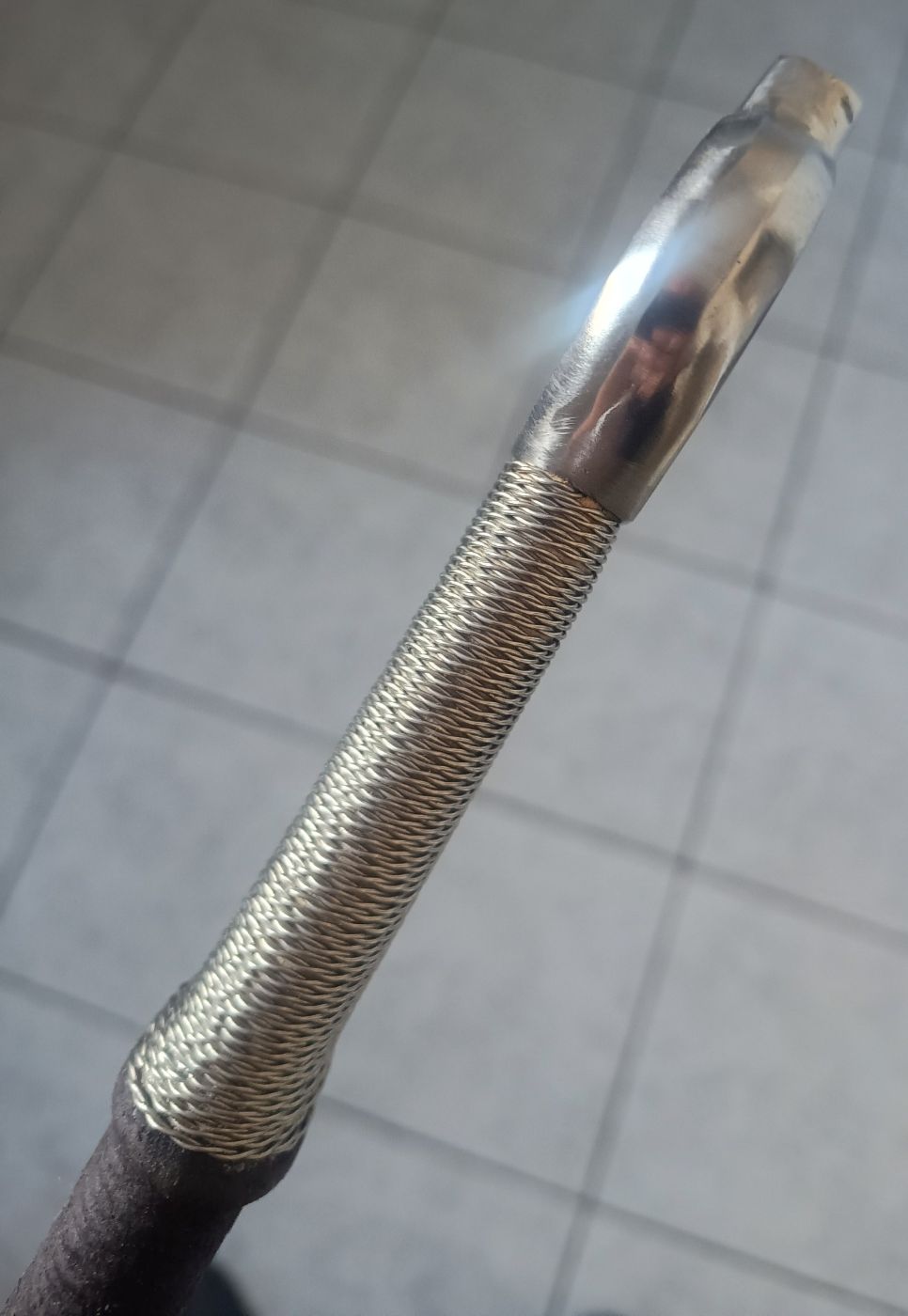 Griffmaterial: Leder und Edelstahldraht über Holz