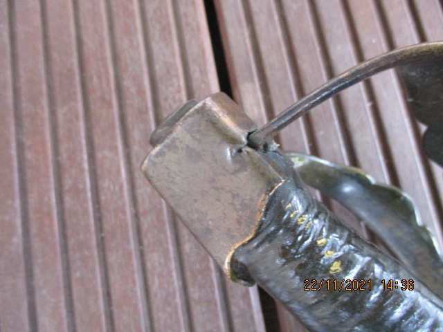 wer kann etwas zu diesen Säbel sagen, das Griffleder scheint