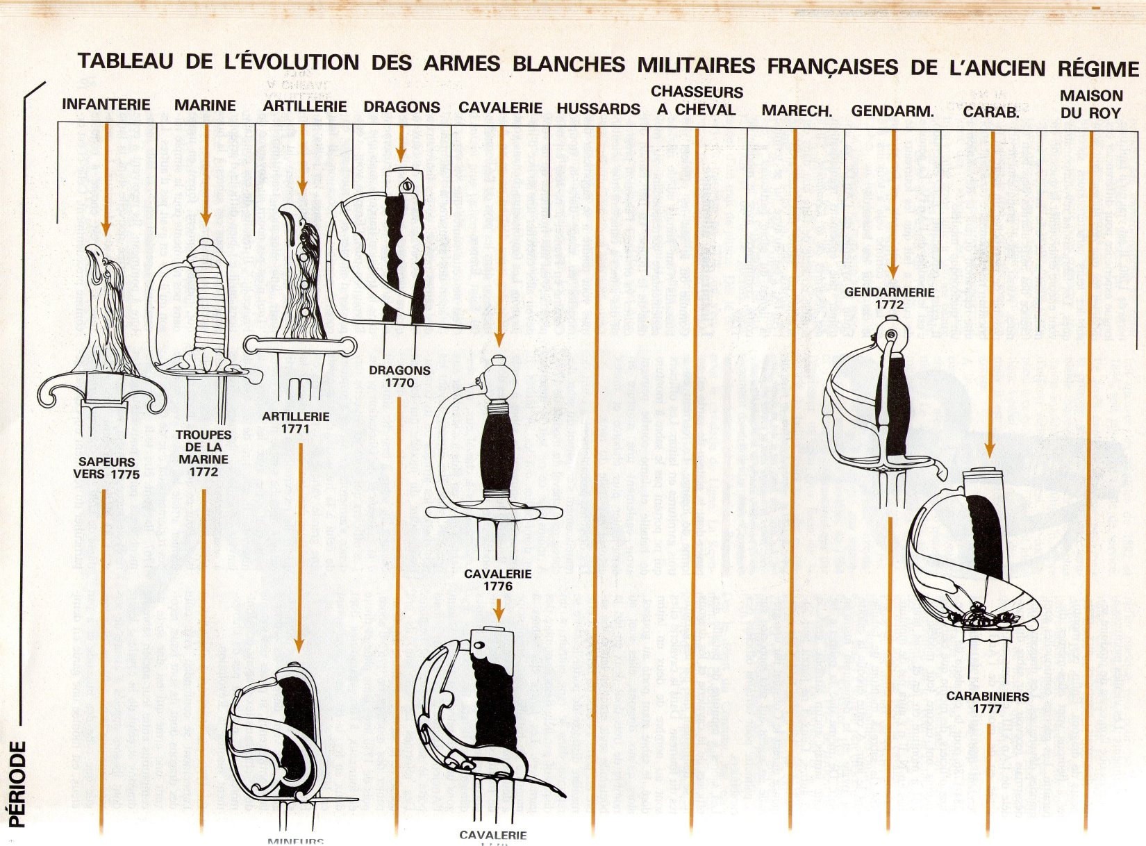 Das Stück it zwar recht ähnlich zum Dragonersäbel 1767 (nicht 1770), aber zeigt doch Unterschiede. Dies ist der "Sabre pour Chasseurs à Cheval M 1790", also ein Säbel M 1790 der Jäger zu Pferd. (Siehe Lhoste/Resek, Sabres portés par l'armée francaise, n°847 ff).