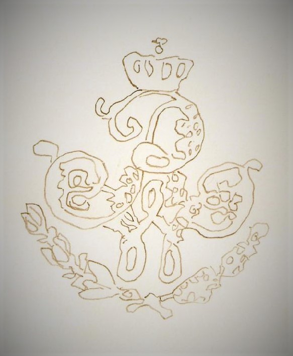 Es hat wie auf der Klinge die zwei gekreuzten Zweige unterm Monogramm und zusätzlich über der Chiffre den Text "DEN 17. MÄRZ 1863" .