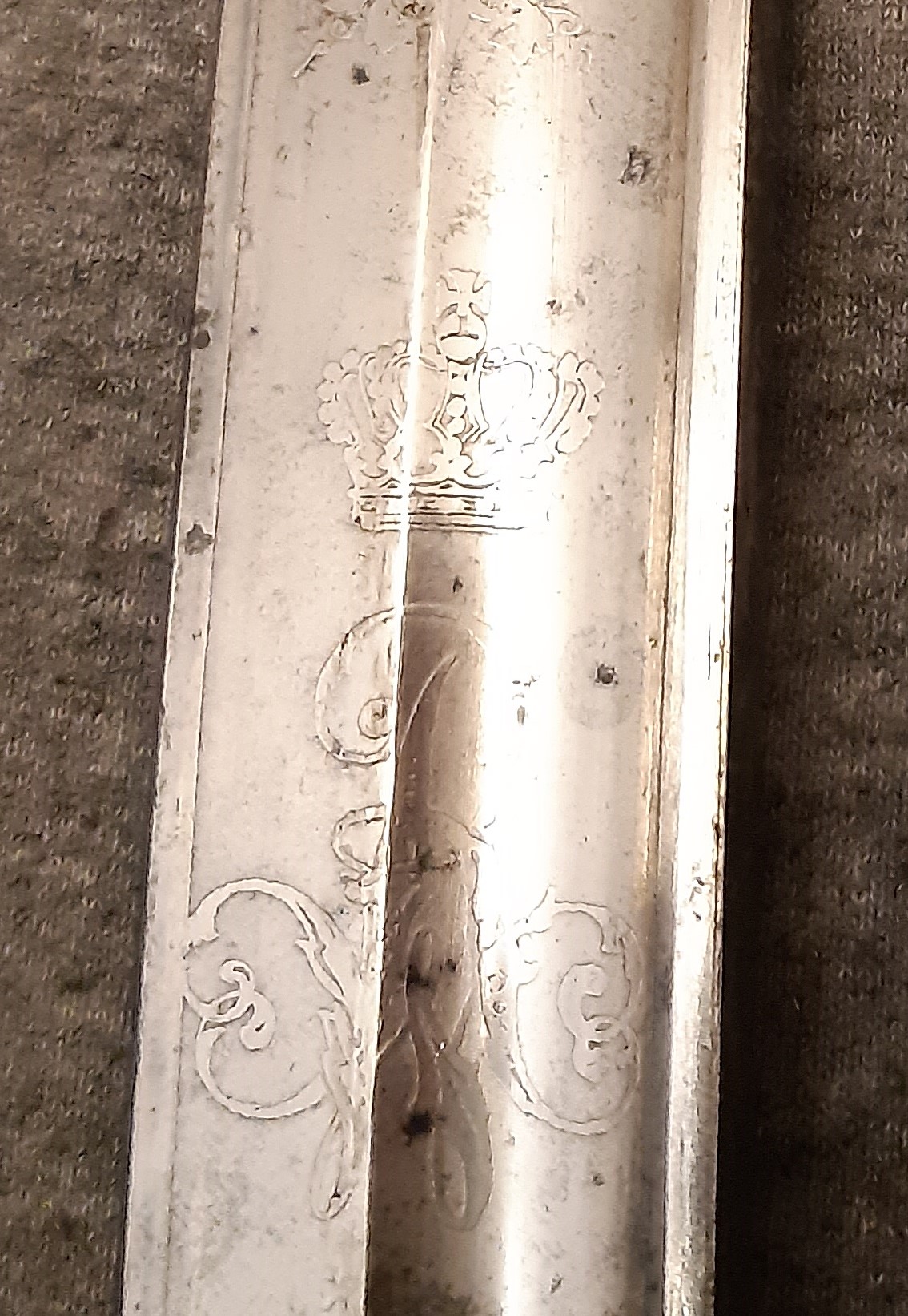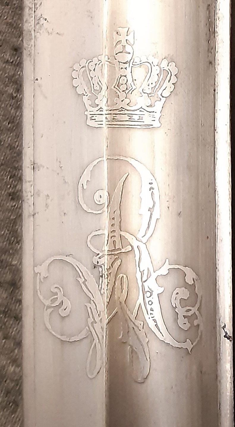 Beide Säbel haben allerdings einen Adler mit Herrscher-Monogramm auf der Brust und das haben wir ja bei diesem Stück nicht.
