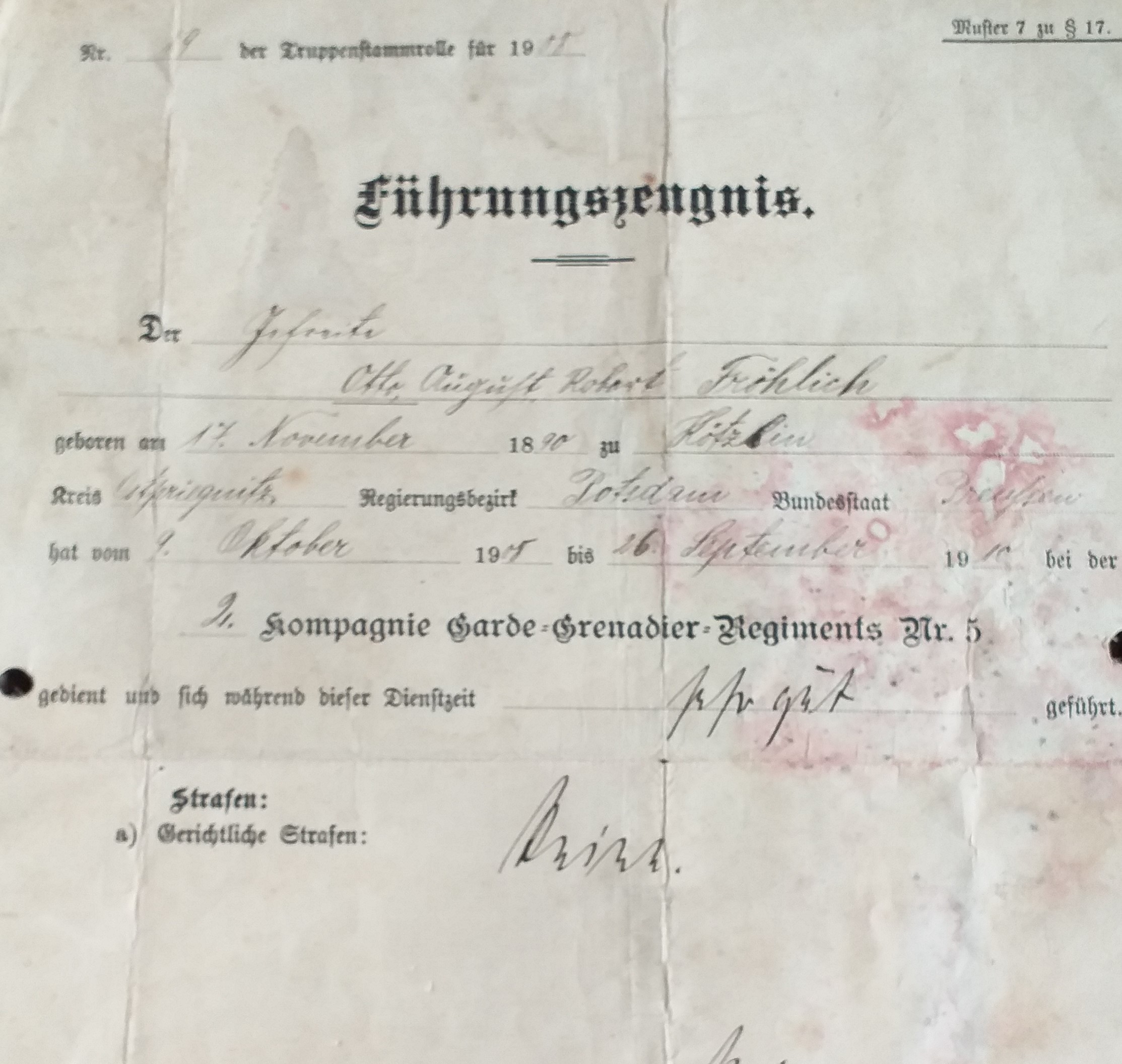 Opa beim 5.GGR, 2.Kompanie. Wehrdienst 1910.