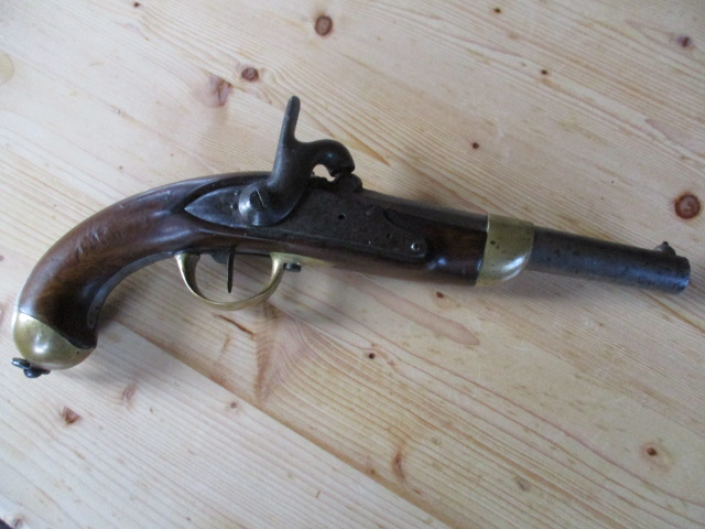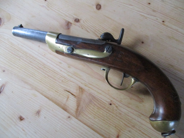 Ich habe eine recht gut erhaltene franz. Kavall. Pistole "M 1822 Tbis" aus dem Jahre 1862 und wollte sie schon mal vorstellen, aber von dem Typ gibts ja bereits viele Fotos.