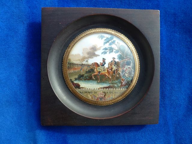 Die Darstellung des ollen Fritzen i.d. Mitte erinnert mich an eine Miniatur von Daniel Chodowieckis. Es gab da wohl mal eine Darstellung von 1773 "Die Wachtparade", die Friedrich mit seinem Gefolge zeigte, die jedoch verschollen ist. Allerdings gibt es einige Darstellungen, die auf die o.g. Bezug nehmen und sie kopieren. Näheres dann dazu im Internet unter dem Künstlernamen.
