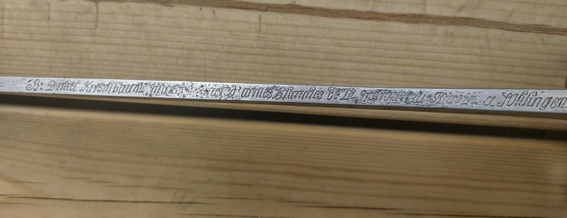 vielen Dank für die Vorstellung Deines Pallaschs auch hier im Forum. Um die Diskussion in die richtige Richtung zu lenken, muss die Waffe insgesamt betrachtet werden. Dein Einverständnis vorausgesetzt, erlaube ich mir, das Foto der Vernietung hier zu zeigen.
