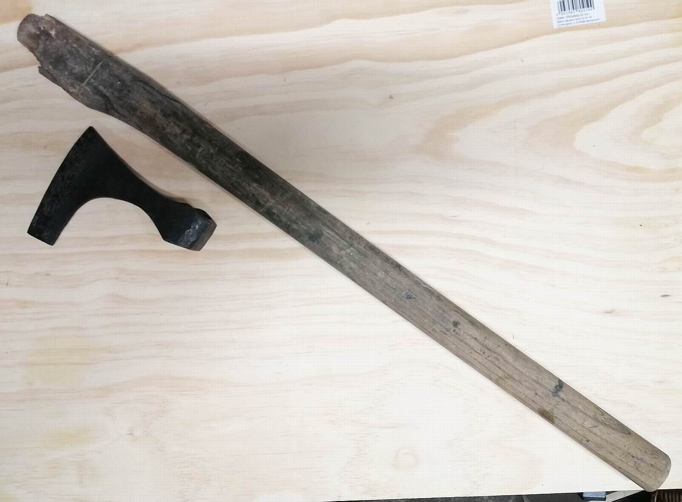 Ich hatte mir auf dem Wikingermarkt in Schilde einen handgeschmiedeten Bartaxtkopf gekauft und selbst aufgestielt. Der Stiel lag bei mir noch rum, stammt von einem uralten Beil und ist steinhart.