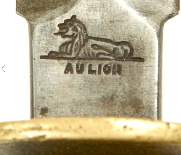 Es befindet sich auf einer großen Anzahl von in Frankreich für die US Truppen hergestellten US Trench Knife Mark 1 aus der Zeit des ersten Weltkrieges.