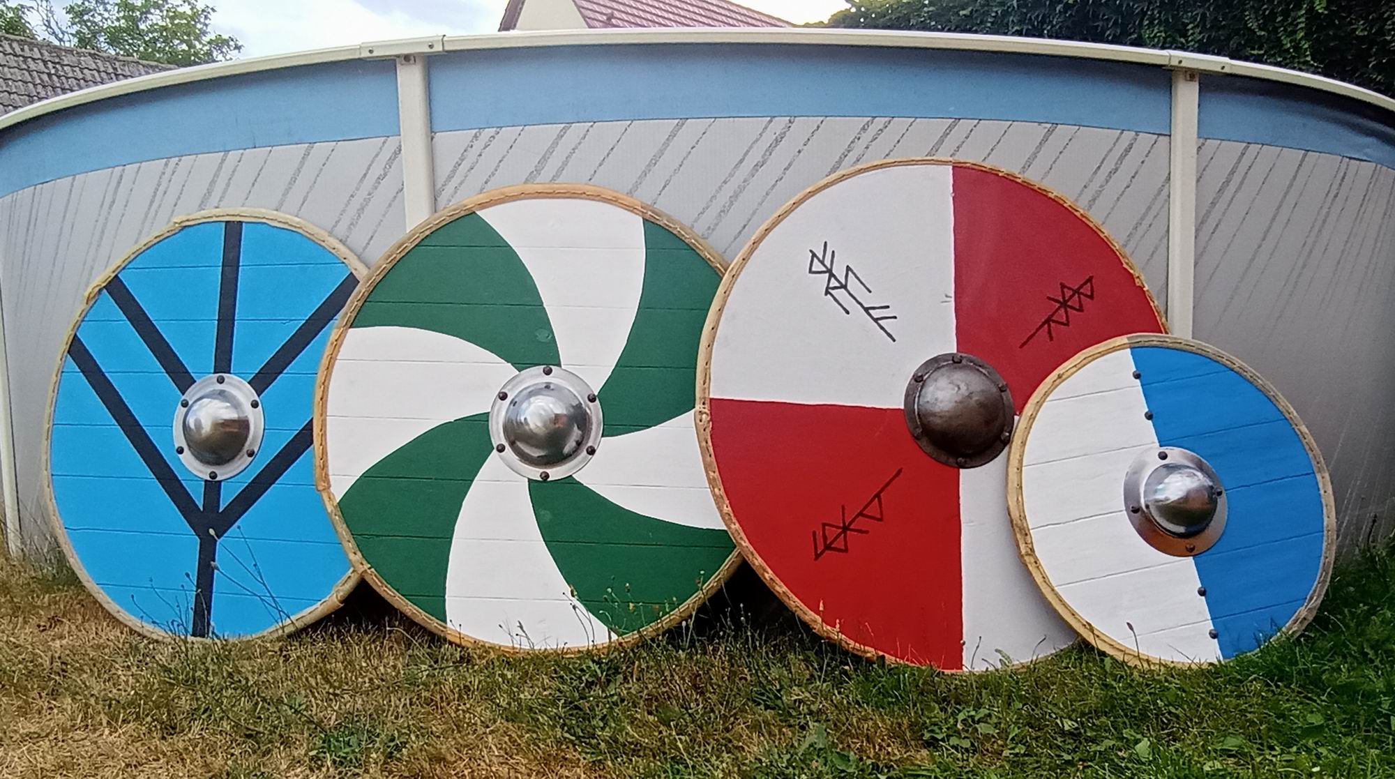 erstmal genug mit Sägen, Schleifen, Streichen, Schneiden, Nähen und Hämmern. Das reicht für einen kleinen Schildwall. :D