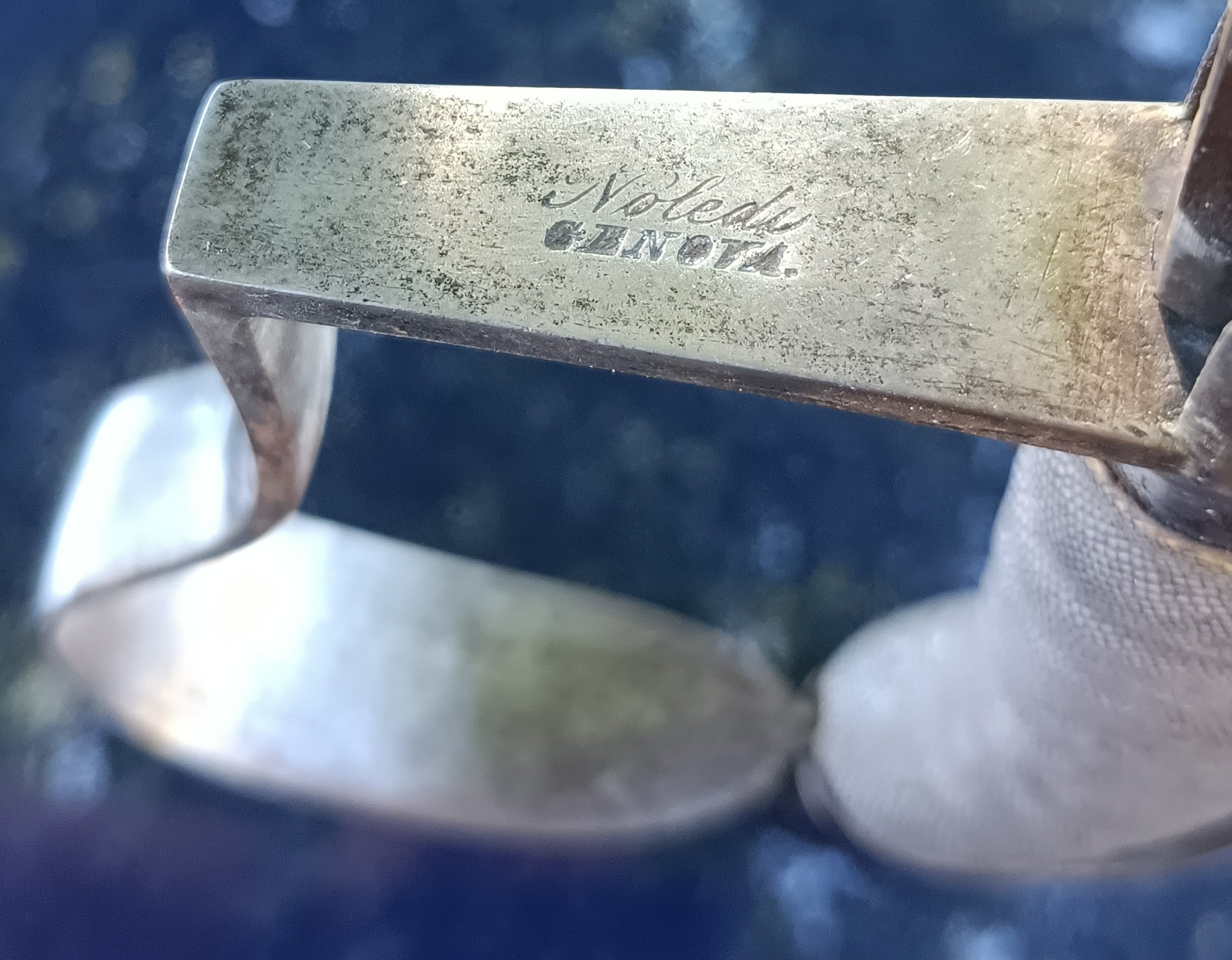 Name und „GENOVA“ sprechen für einen Hersteller/Lieferanten aus Genua; der Säbel könnte also aus dem Bereich des heutigen Italien stammen, wobei ich zur damaligen Geschichte vor der Einigung Italiens und der Bewaffnung dort keine Angaben machen kann. Ob er nun einem der „italienschen“ Staaten oder Österreich zuzuordnen ist, weiß ich nicht.