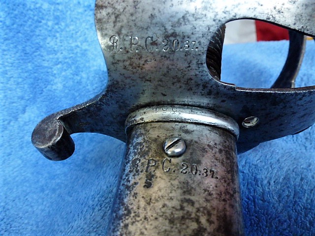 Die Säbel der Reserve-Proviant-Kolonne 20 waren Depotbestand und wurde nur im Mobilmachungsfall ausgegeben. Der Stempel ist kein Weltkriegsstempel, obwohl der Säbel sicherlich im Weltkrieg ausgegeben wurde. Das „C“ für Colonne wurde nach der Stempelvorschrift von 1909 durch die Deckblätter von 1910 (?) handschriftlich mit einem „K“ ersetzt. Ob dies auch in der Praxis so war, sei dahingestellt.