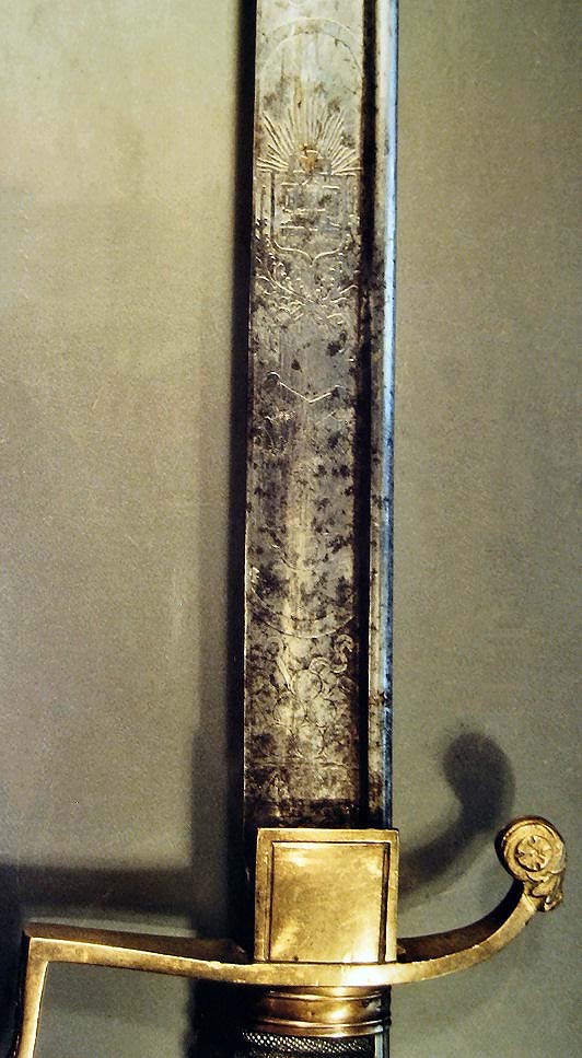 Es handelt sich bei diesem Säbel eindeutig um einen Hamburger Bürgermilitär Säbel, weil das Wappen typisch ist für Hamburg vor 1870 (Belege hierfür finden sich auf Hamburger Münzen und Urkunden des Hamburger Bürgermilitärs) und außerdem ist der Strahlenkranz mit dem Hanseatenkreuz ein typisches Emblem, um nicht zu sagen das einzige Emblem, des Hamburger Bürgermilitärs (siehe z.B. Tschako-Emblem des Hamburger Bürgermilitärs).