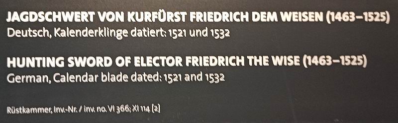 Jagdschwert von Kurfürst Friedrich dem Weisen (1463 - 1525).