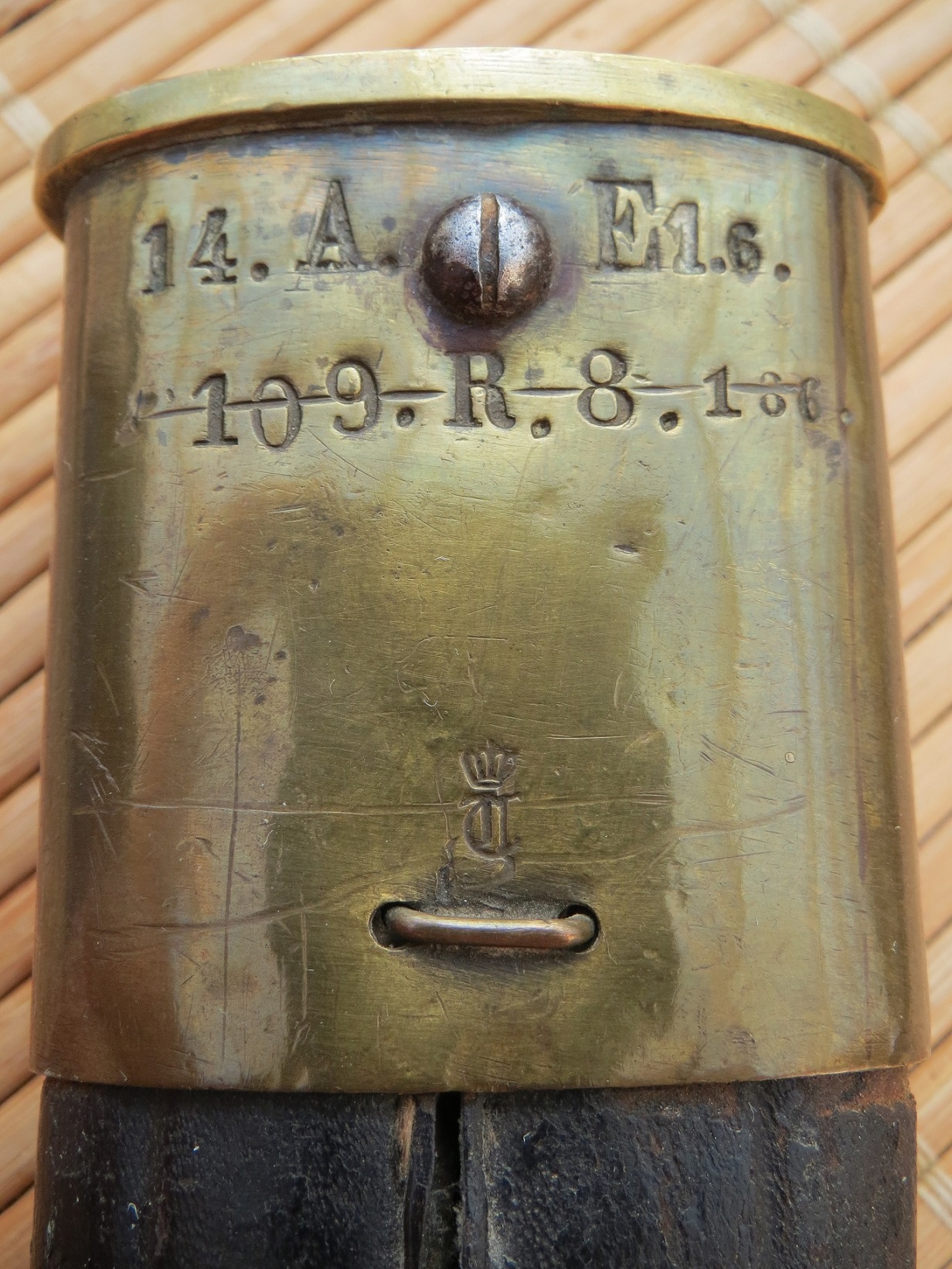 Die durchgestrichene Stempelung 109.IR Leib Grenadier Regiment und der geschwärzte Abnahmestempel unter dem W72 Monogramm auf dem Klingenrücken lassen mich dies annehmen.