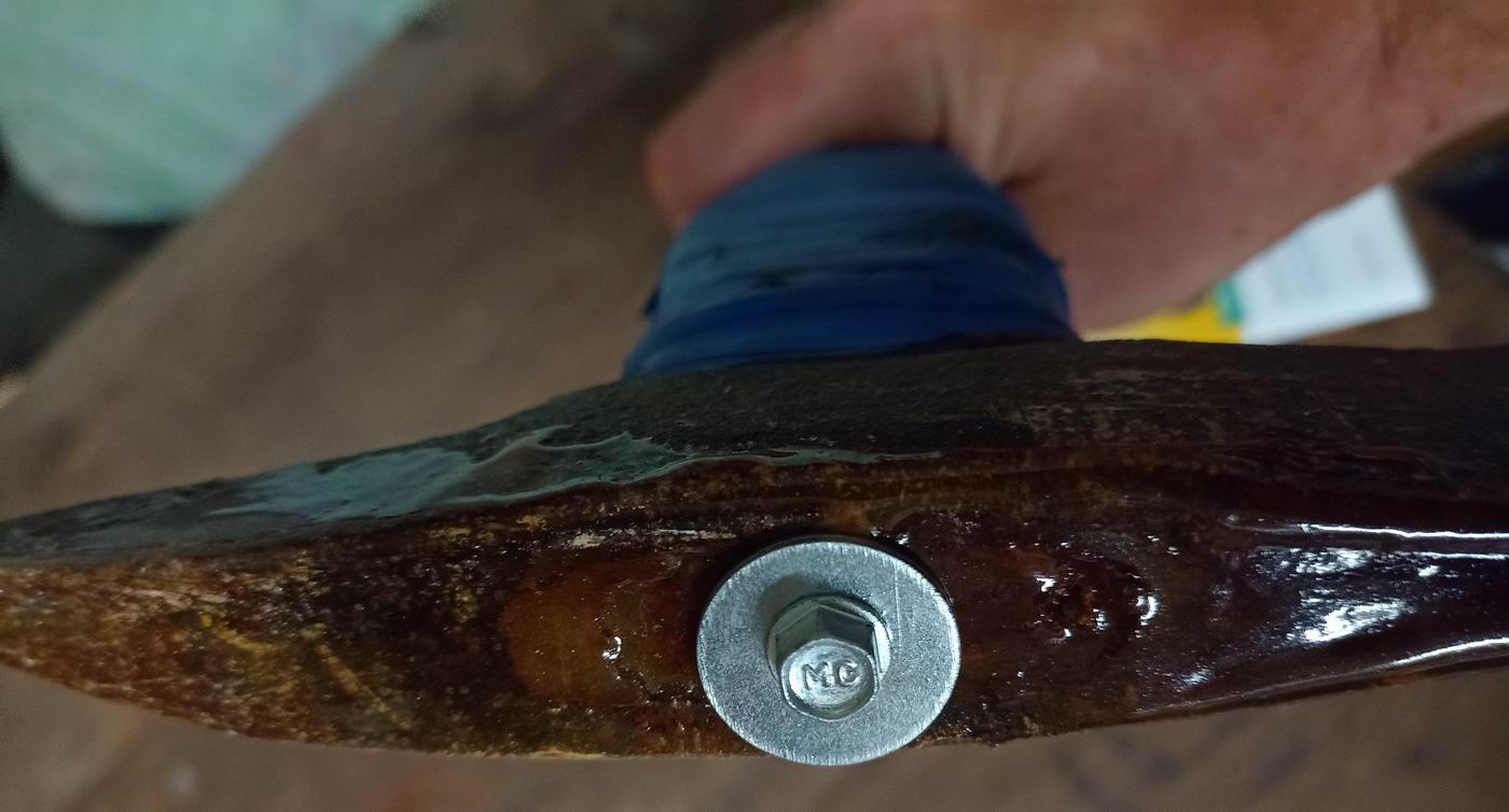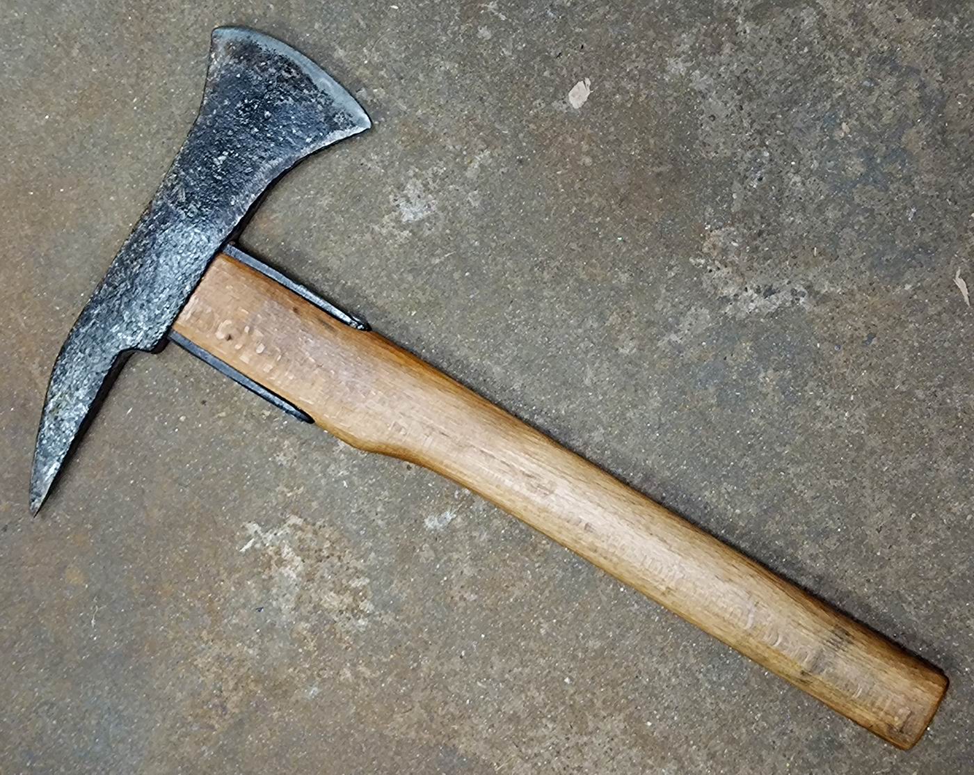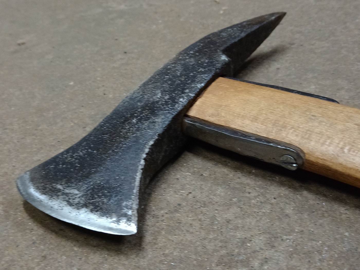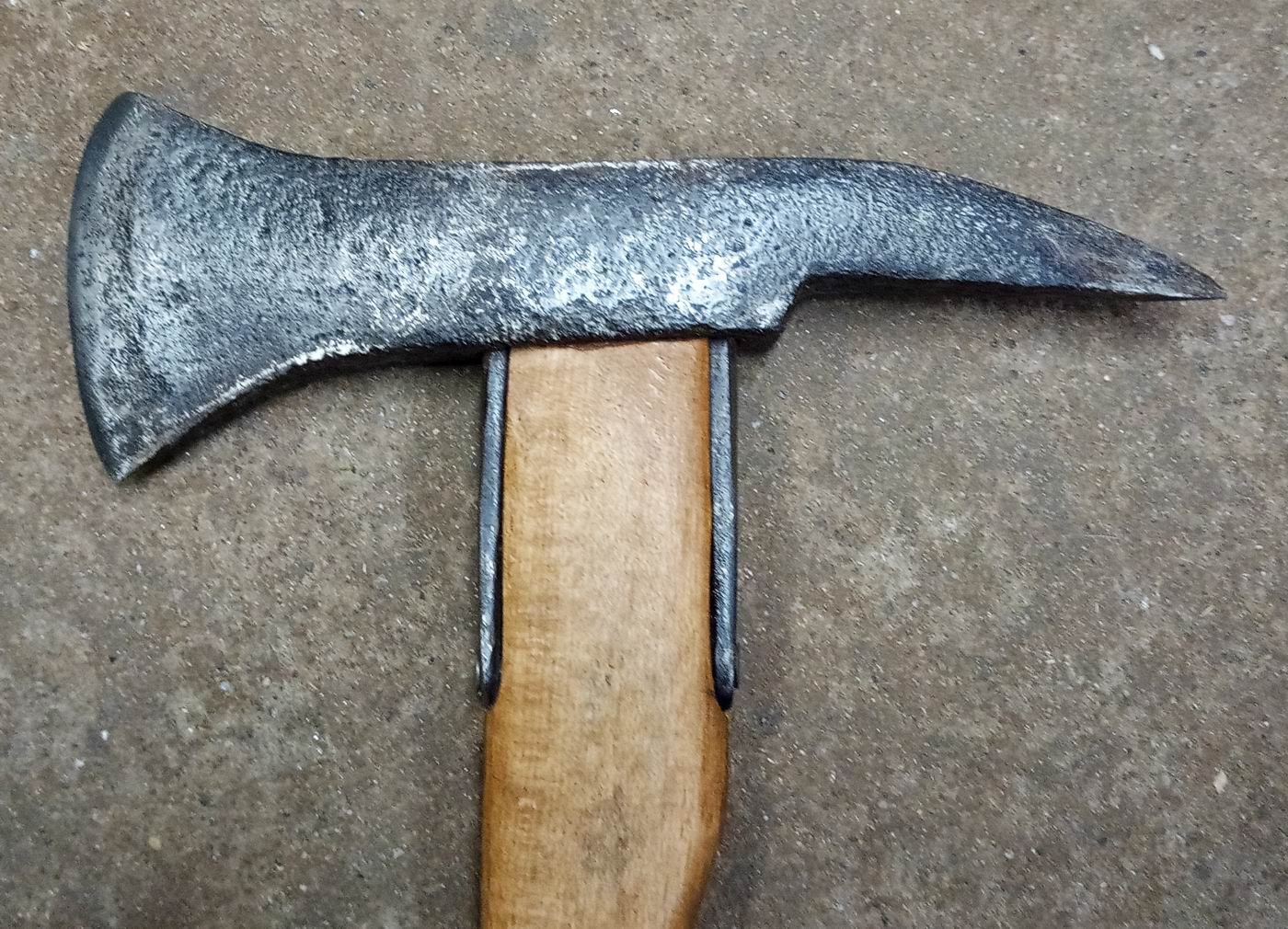 Nun habe ich es auch geschafft dem Feuerwehrbeil einen neuen Stiel zu verpassen. Die seitlichen Metallstreifen habe ich aus den Griffen einer alten Kneifzange geschliffen.