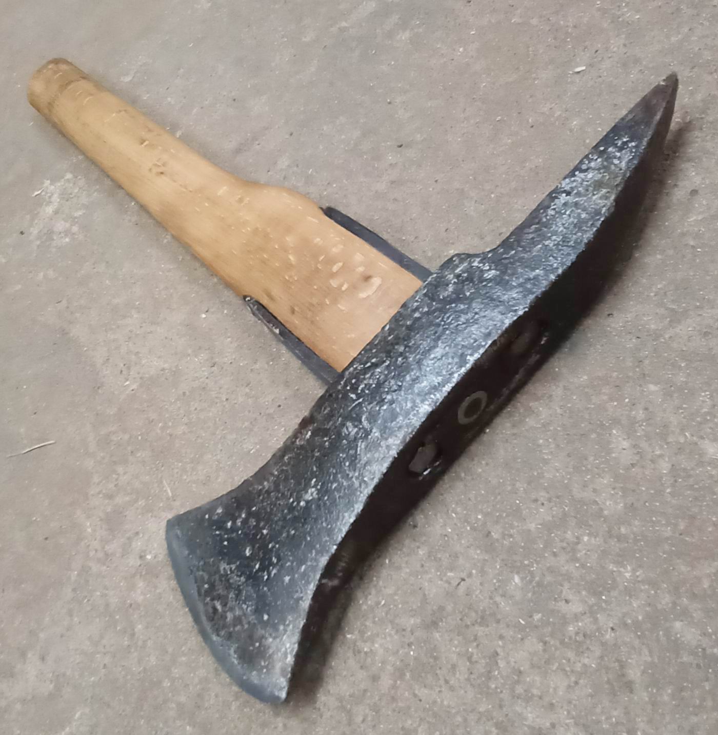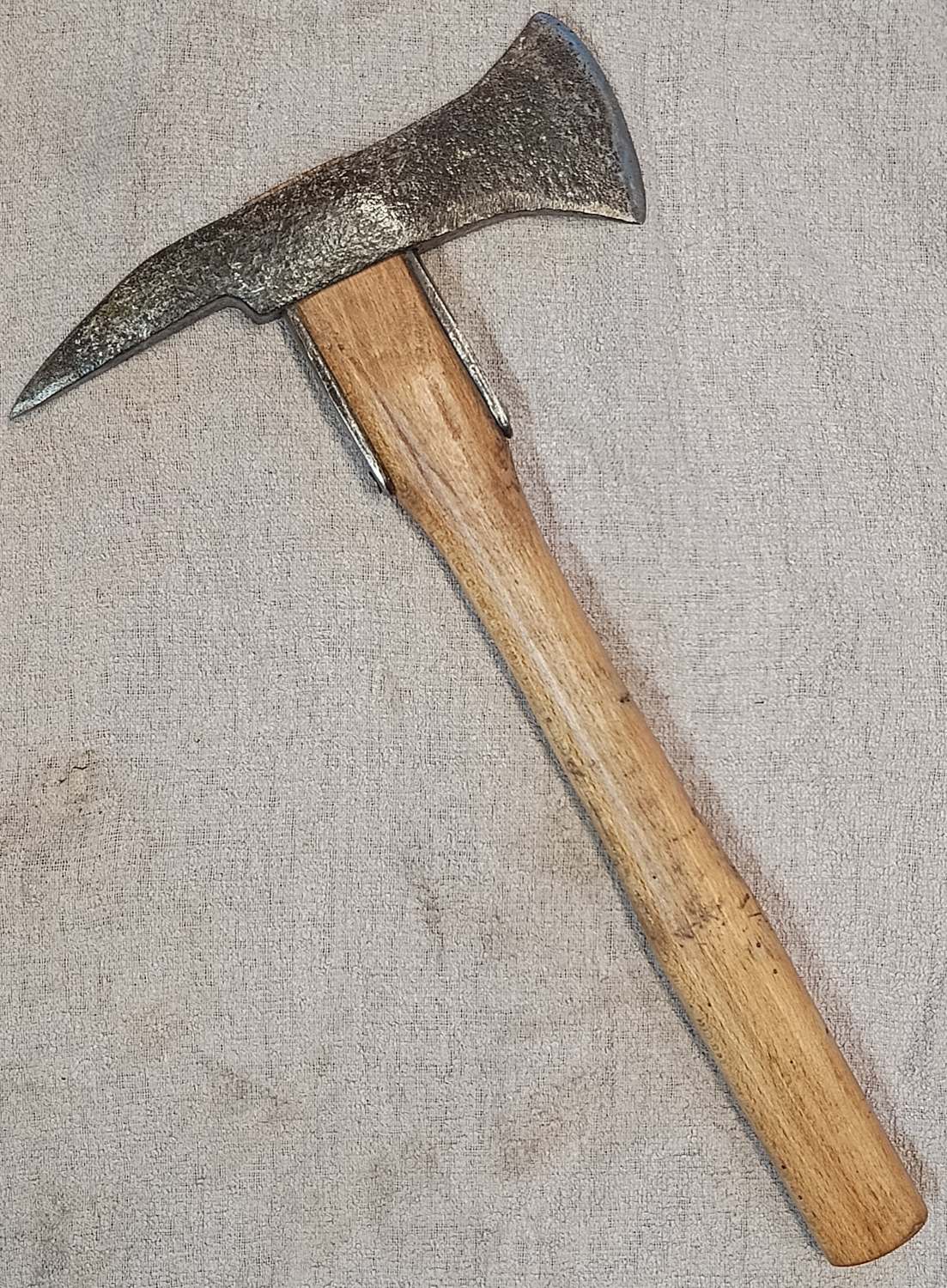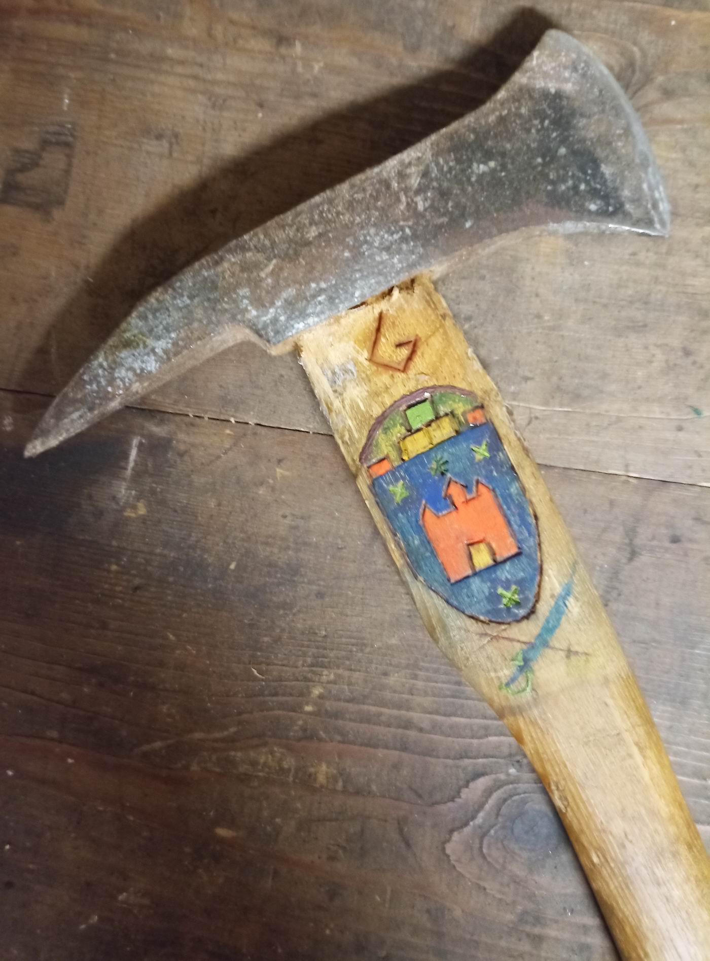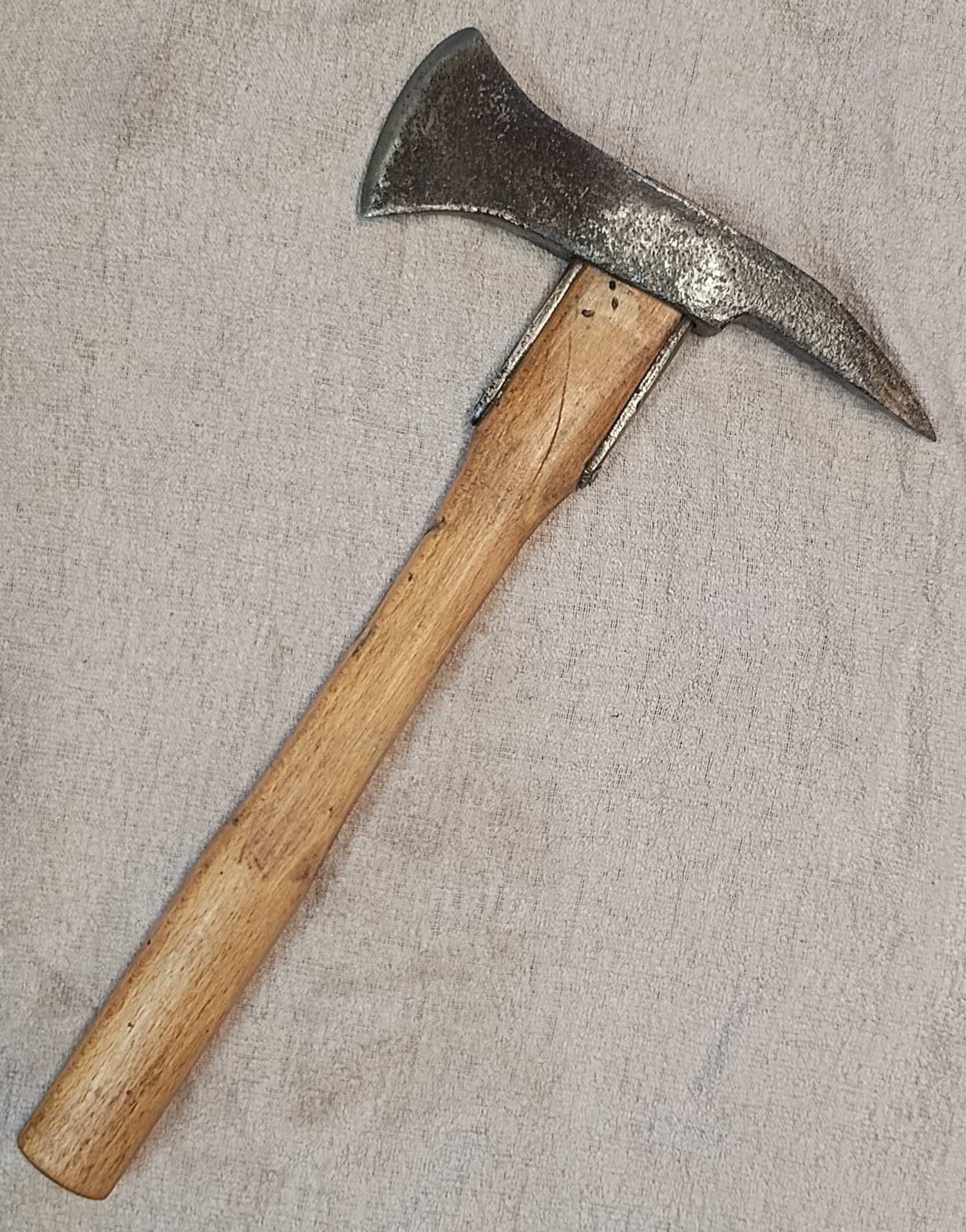 Ledertasche, Stielbemalung, -befestigung und -umwicklung sind natürlich nicht ursprünglich, aber eine Frage stellt sich mir doch. Gab es auch zivile Beilpicken?