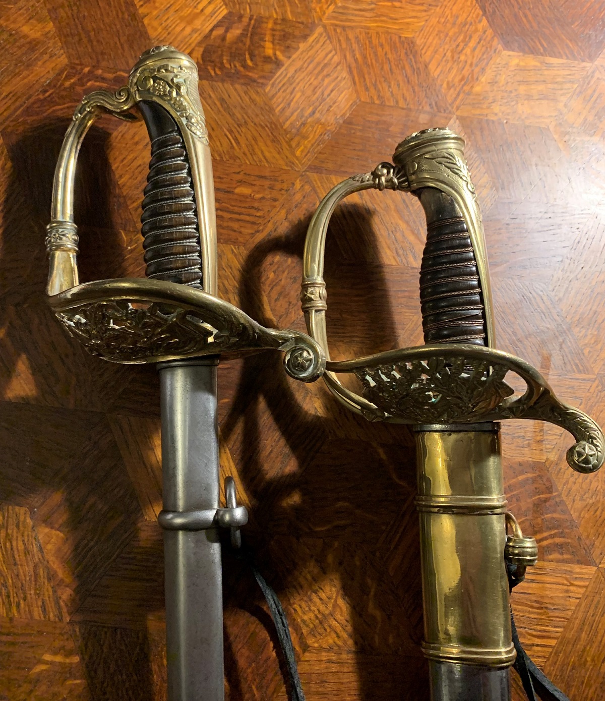 Mahlzeit. War lange nicht mehr hier. Ich habe hier ein Messinggefaess.eines Saebels. Koennte mir jemand das genauer identifizieren bitte? Wurde.vor.Jahren mit vielen anderen Saebeln.aus einem Wehr gezogen. Klinge ist fast weg. Ich selber vermute einen Franzosen unter Napoleon 3. Vielen Dank fuer eure Hilfe vorab.