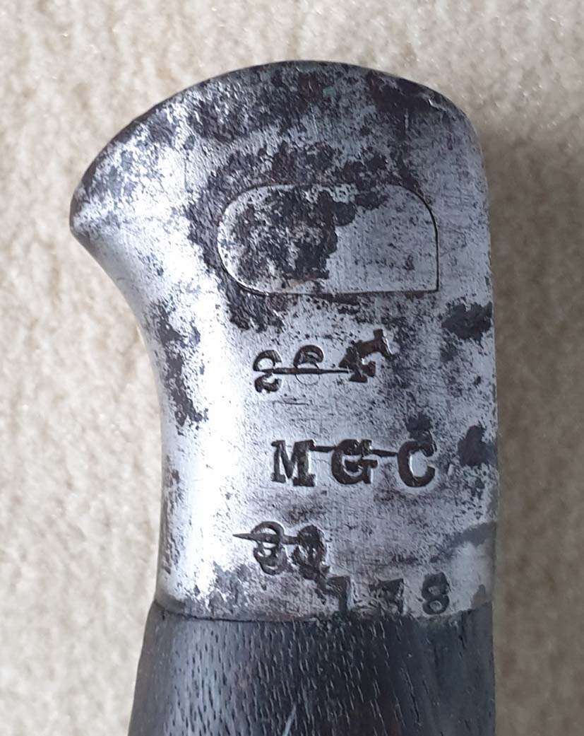 Ich tippe auf ein Enfield-Modell, da die eine Punze eine britische Krone zeigt.