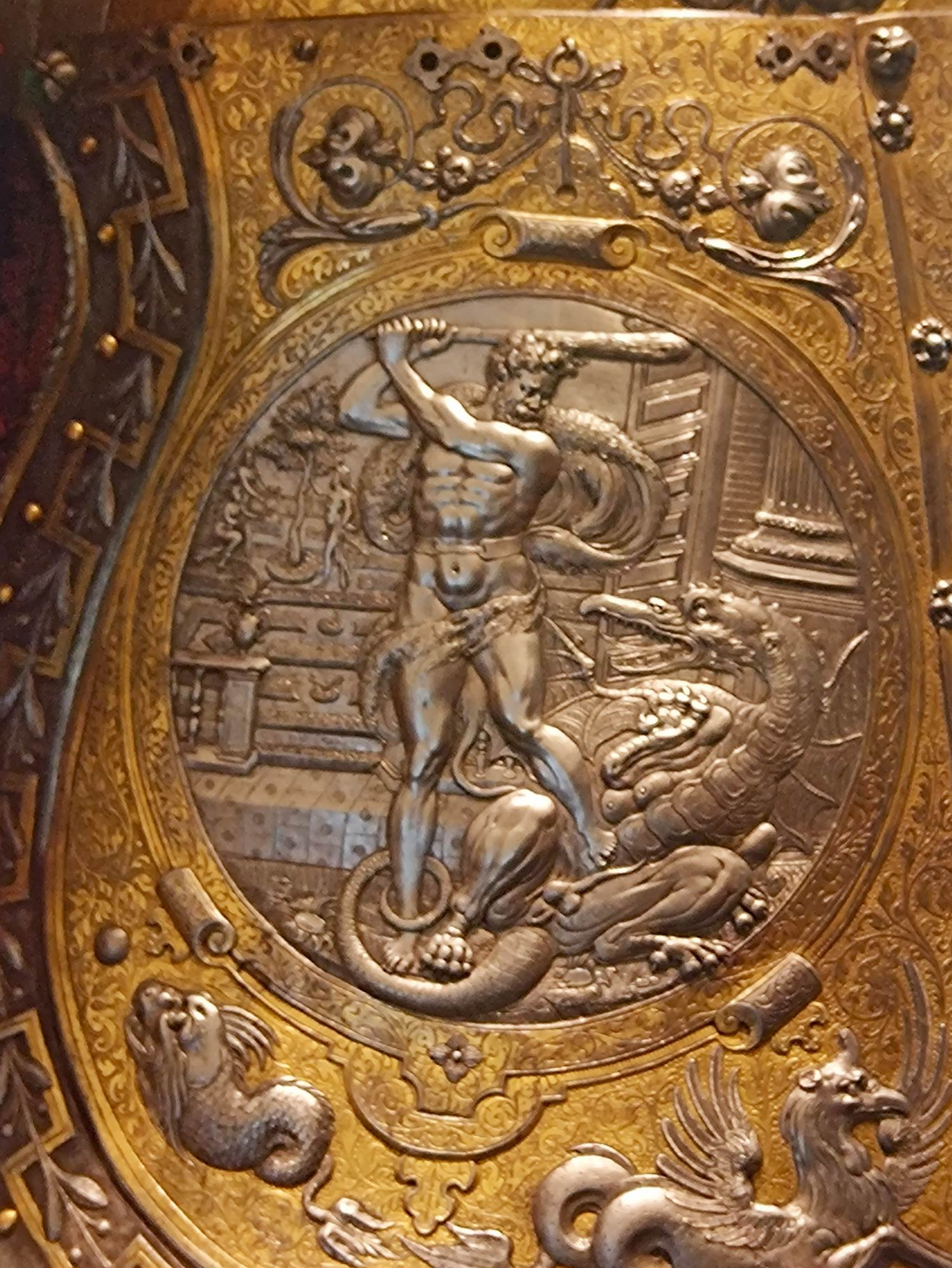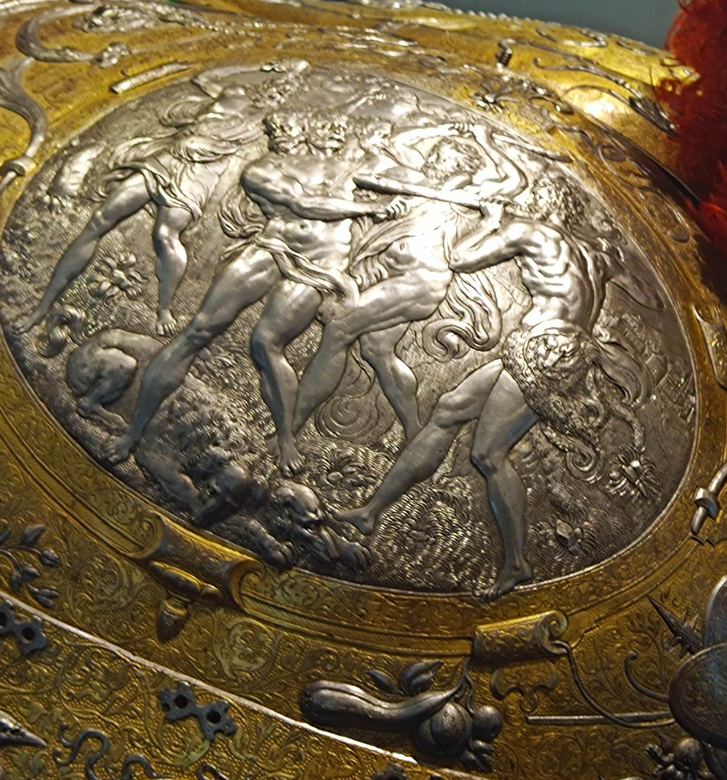 Die Prunkgarnitur König Cristian II von Sachsen, auch Goldene Rüstung oder Herkulesrüstung gilt als am besten gearbeitete Rüstung die je hergestellt wurde.
