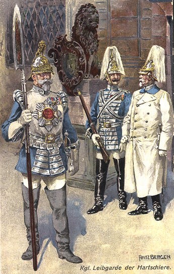 Hier die Ansichtskarte eines bayrischen Hartschiers mit Kuse um 1850.