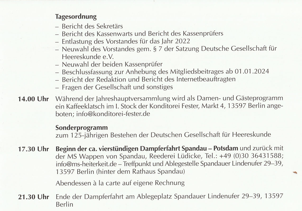 Anläßlich von 125 Jahre Heereskunde verzichtete die Gesellschaft bewußt auf einen Festredner und erwarb statt dessen die hier übergebene Fahne.