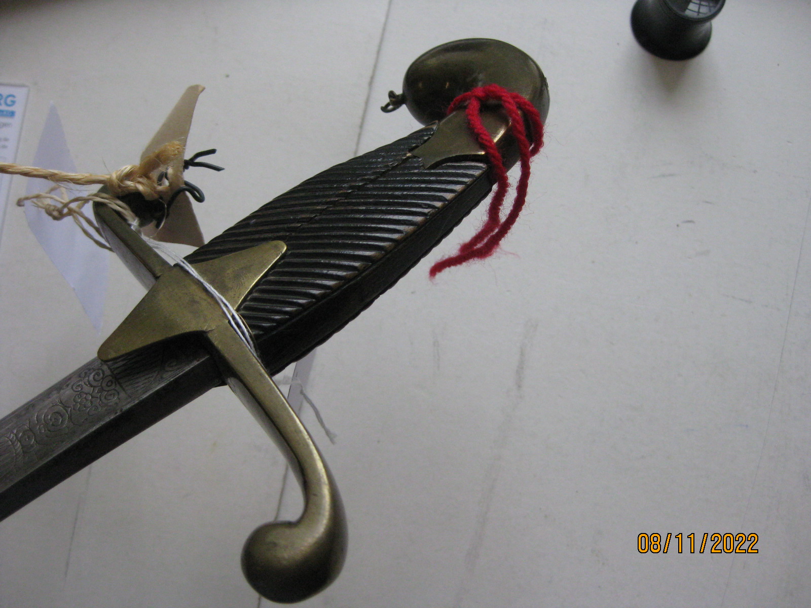 :confused: Wohl 18tes Jahrhundert, markante Scheide mit schlangenförmigen Beschlägen.