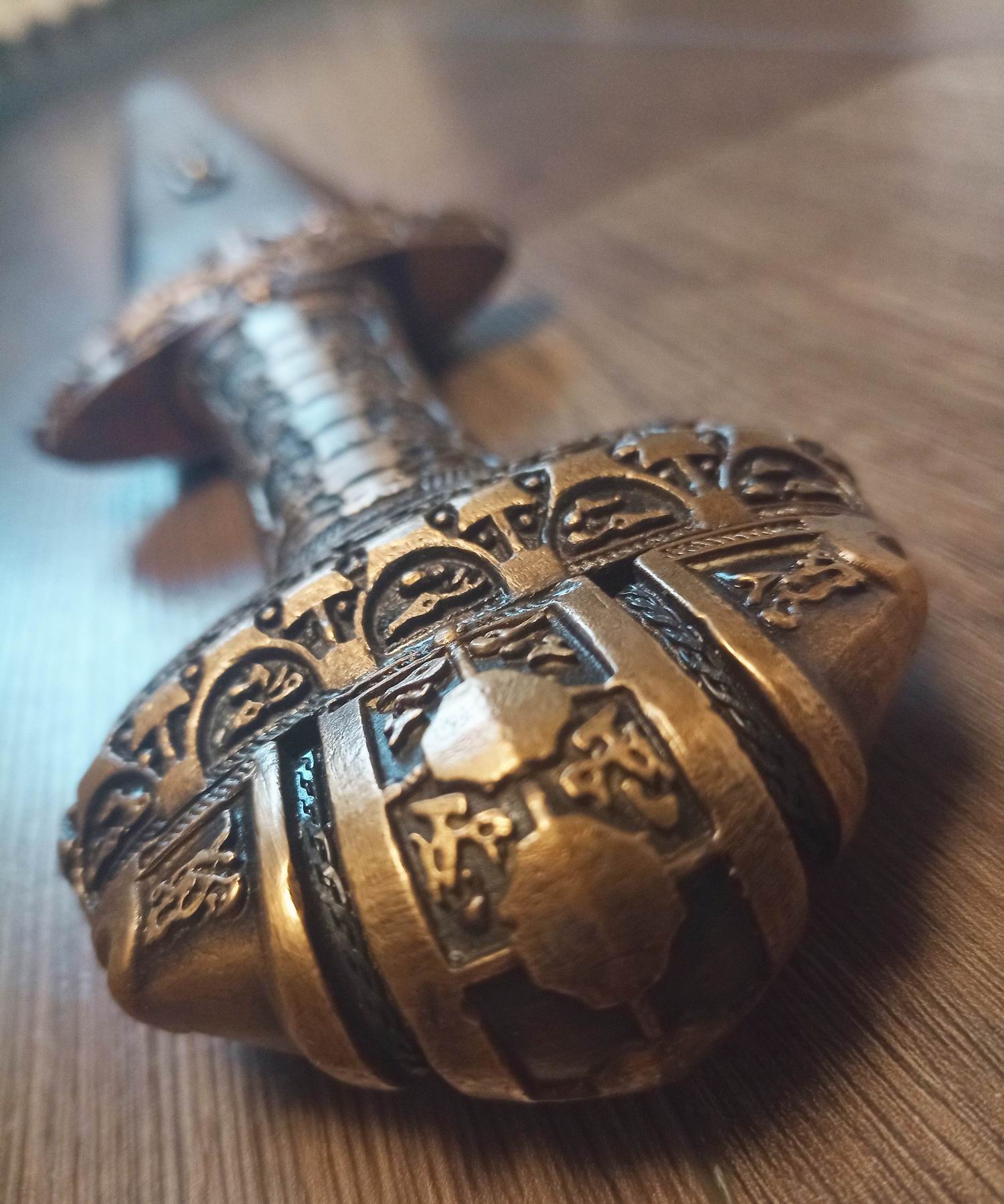 Ein attraktives, aber leider auch sehr schweres Schwert. Die Klingengeometrie könnte besser sein. Eine breitere und längere Hohlkehle wäre hier besser, originaler und vor allem wäre dann die Klinge leichter.