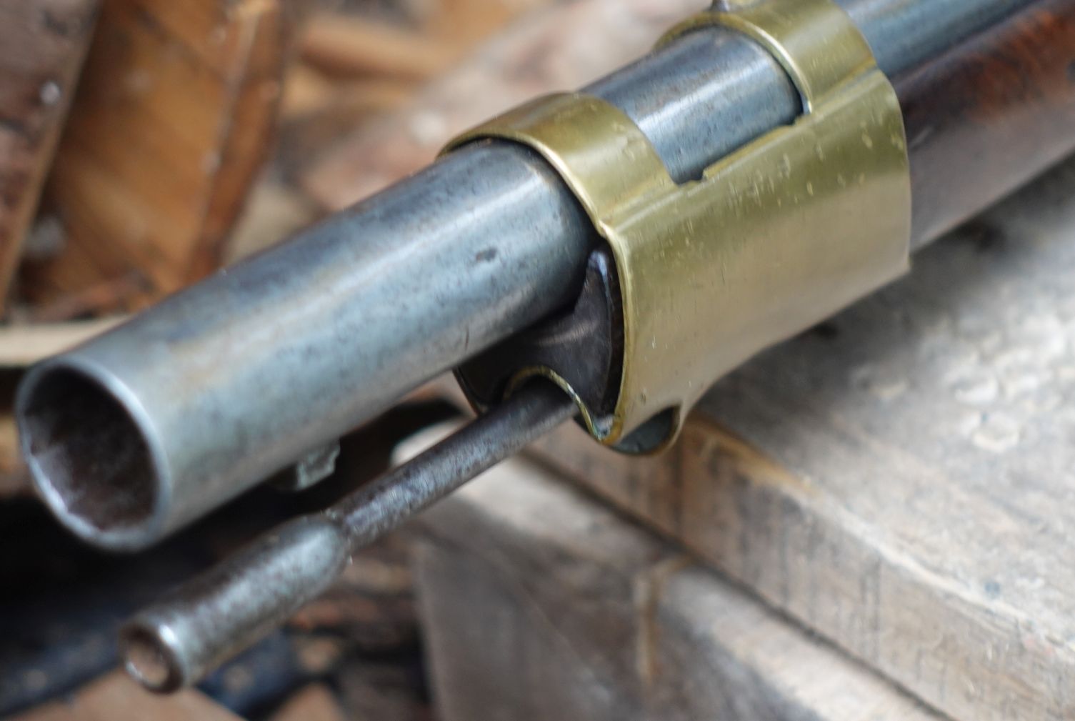 Da der Fragesteller keine Angaben zu etwaigen Herstellermarkierungen oder staatlichen Abnahme-und Kontrollstempel macht, gehe ich davon aus, dass Derartiges nicht vorhanden ist. Damit aber ist ausgeschlossen, dass es sich um ein deutsches Ordonnanzgewehr egal welchen Staates handelt. Die Verbindung von bayerisch anmutendem Schloss mit so in Bayern unbekanntem, gezogenem Lauf und eckiger, nach Norddeutschland weisender Backe lässt mich vermuten, dass es sich hier um ein professionell aus unterschiedlichsten Teilen gefertigtes Stück handelt. Die ominöse Laufstempelung wäre damit einer außermilitärischen Vereinigung zuzuschreiben. Im Übrigen waren Truppenteilstempelungen am Lauf in Bayern, aber auch in allen deutschen Staaten zur fraglichen Zeit absolut unbekannt