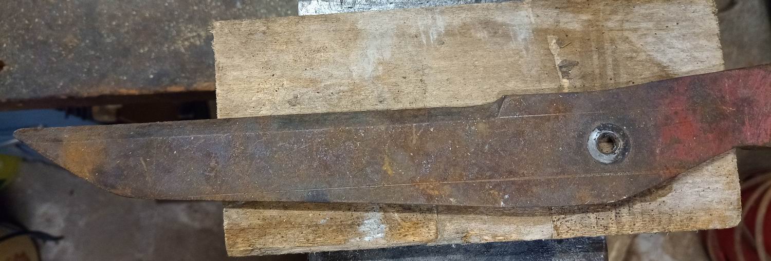 In diesem Fall hat eine alte Heckenschere herhalten müssen. Der Stahl ist nach dem neu Härten so hart, dass man beim Schärfen kaum Material abtragen kann.