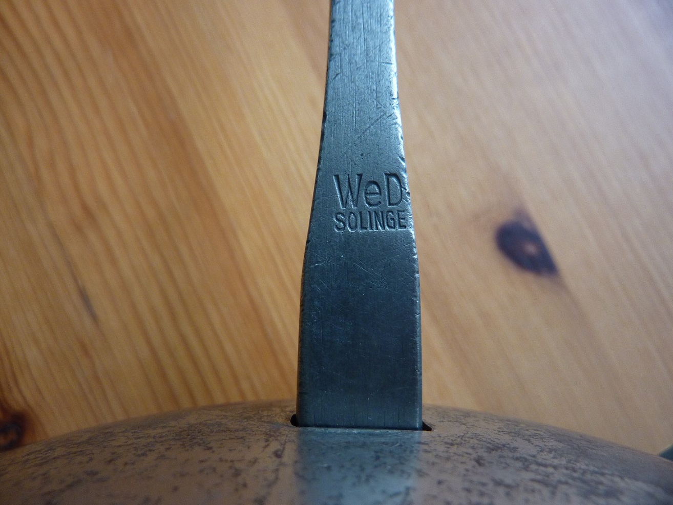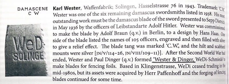 Der Hersteller ist die Firma WeDi-Schmiede, Karl Wester und Paul Dinger. Diese Auskunft habe ich jetzt vom Klingenmuseum Solingen erhalten.