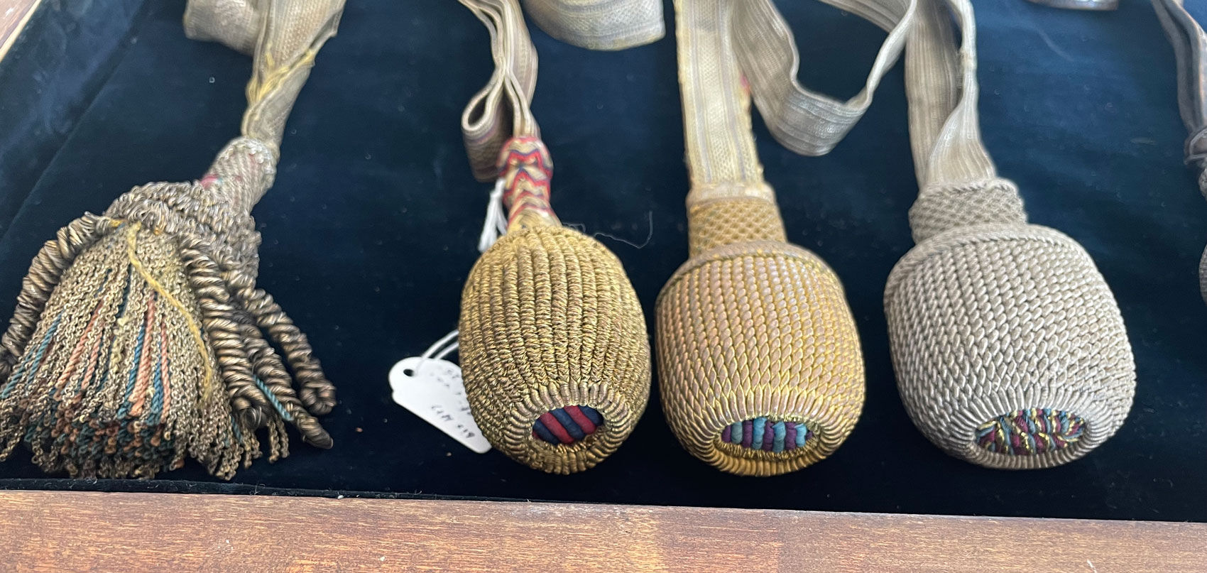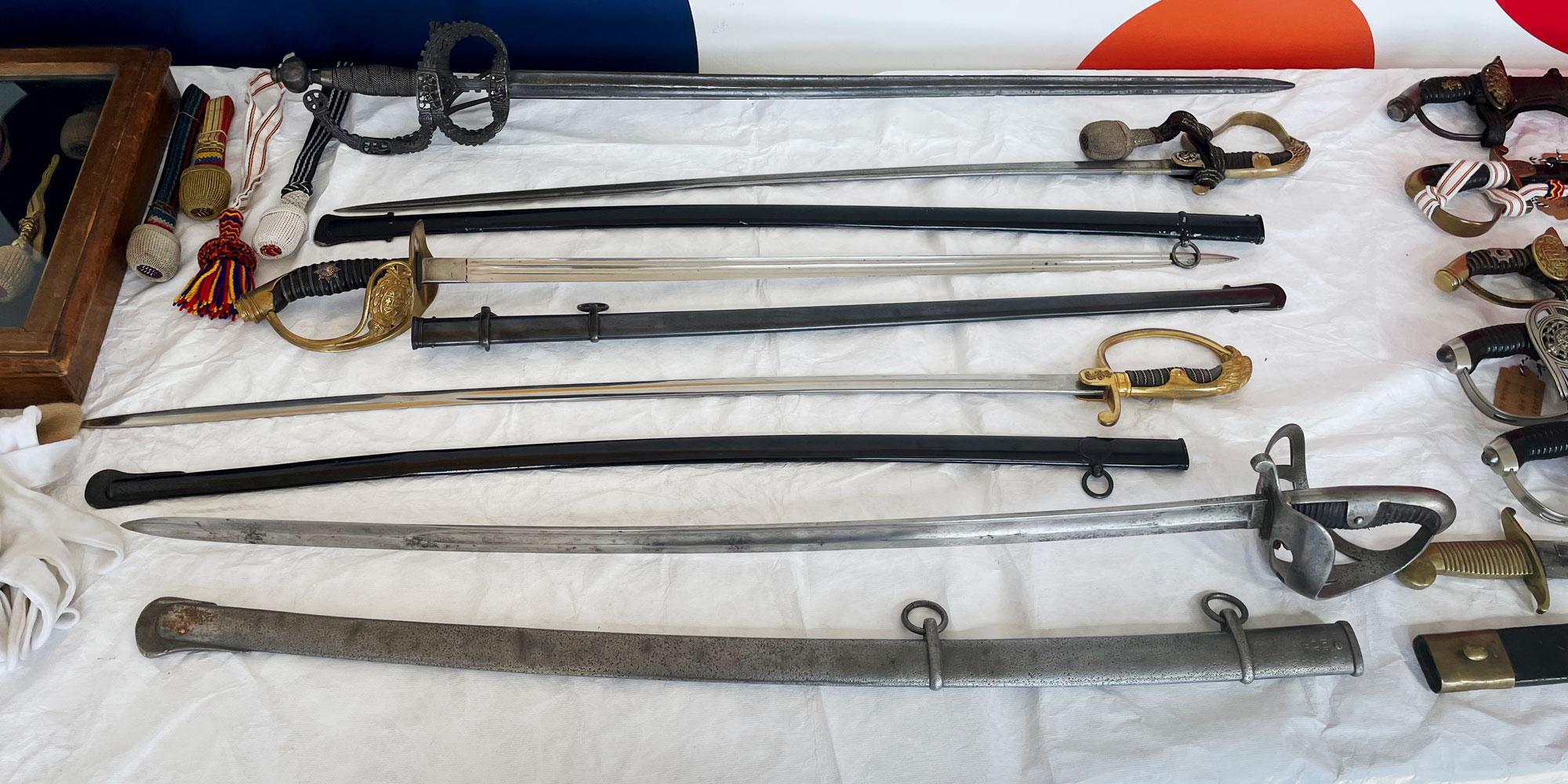 Die im Rahmen der Vortragsreihe gezeigten Stücke. Mit dabei auch ein extrem seltener mecklenburgischer Schießpreis-Hirschfänger für Mannschaften.