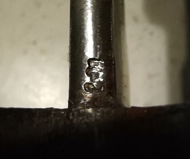 2. Ein weiterer Abnahmestempel auf der terzseitigen Fehlschärfe, der jedoch meist schlecht erkennbar und schlecht lesbar ist (vermutlich die Abnahme der separat hergestellten Klinge)