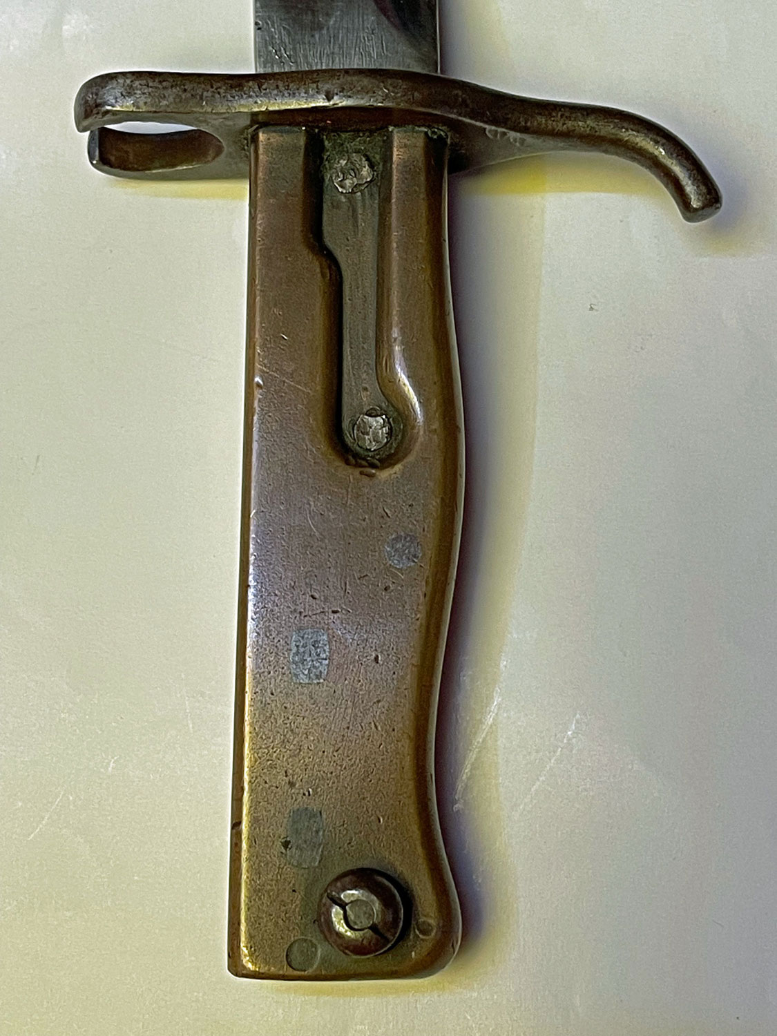 ich habe mich in letzter Zeit etwas näher mit dem bei Carter als Nr. 47 gelistetem Modell aus der Gruppe der Aushilfsseitengewehre 88/98 beschäftigt. Dieses Modell findet man noch relativ häufig und es wird wegen der Ähnlichkeit des Griffaufbaus aus zwei geprägten Blechteilen wie beim aufpflanzbaren Grabendolch von F. Koeller & Co auch diesem Hersteller zugeschrieben.