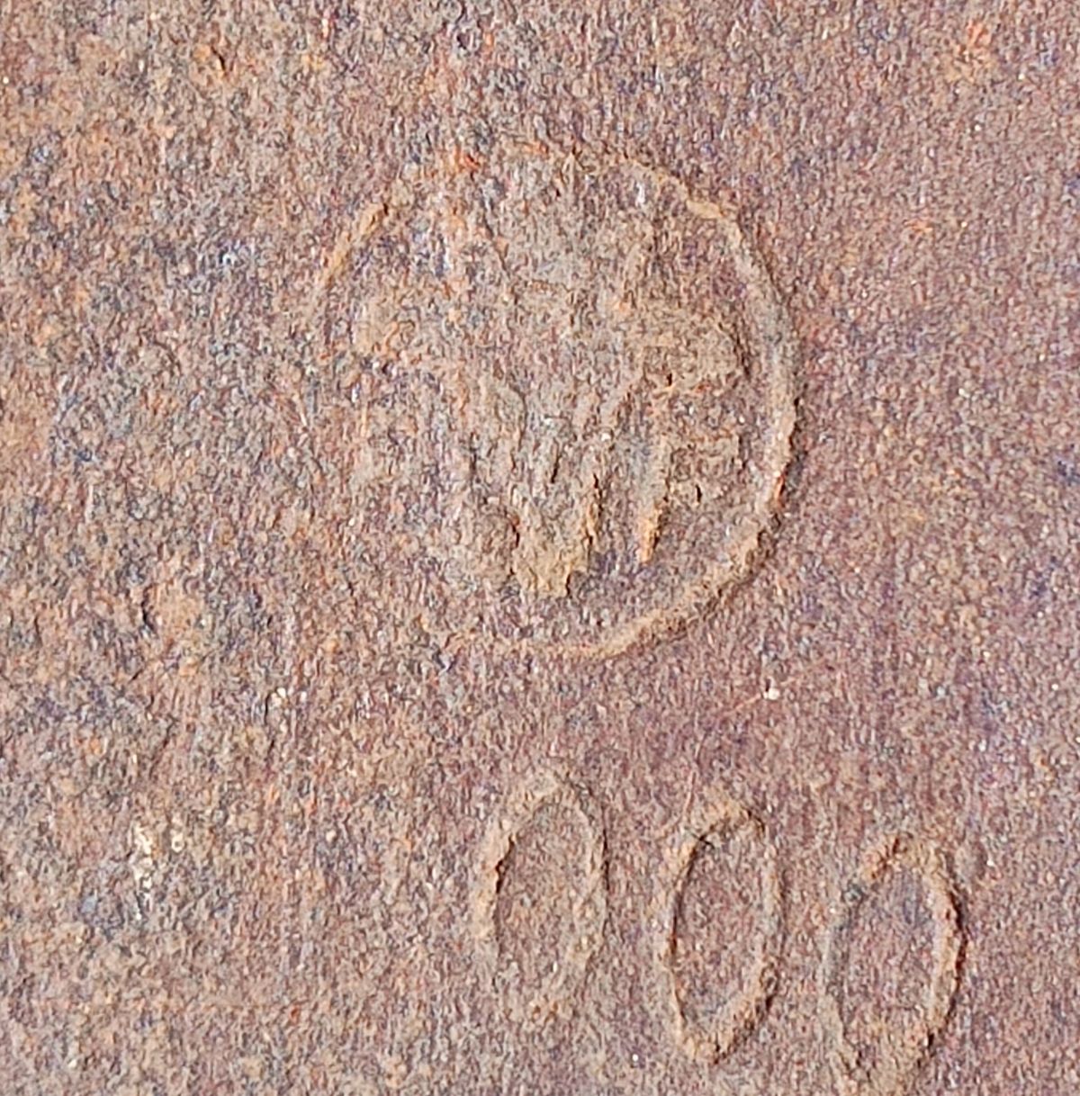 Der etwas kleinere, einst rote Kopf ist unter anderem gestempelt mit "WMW Smalcalda". Das steht für