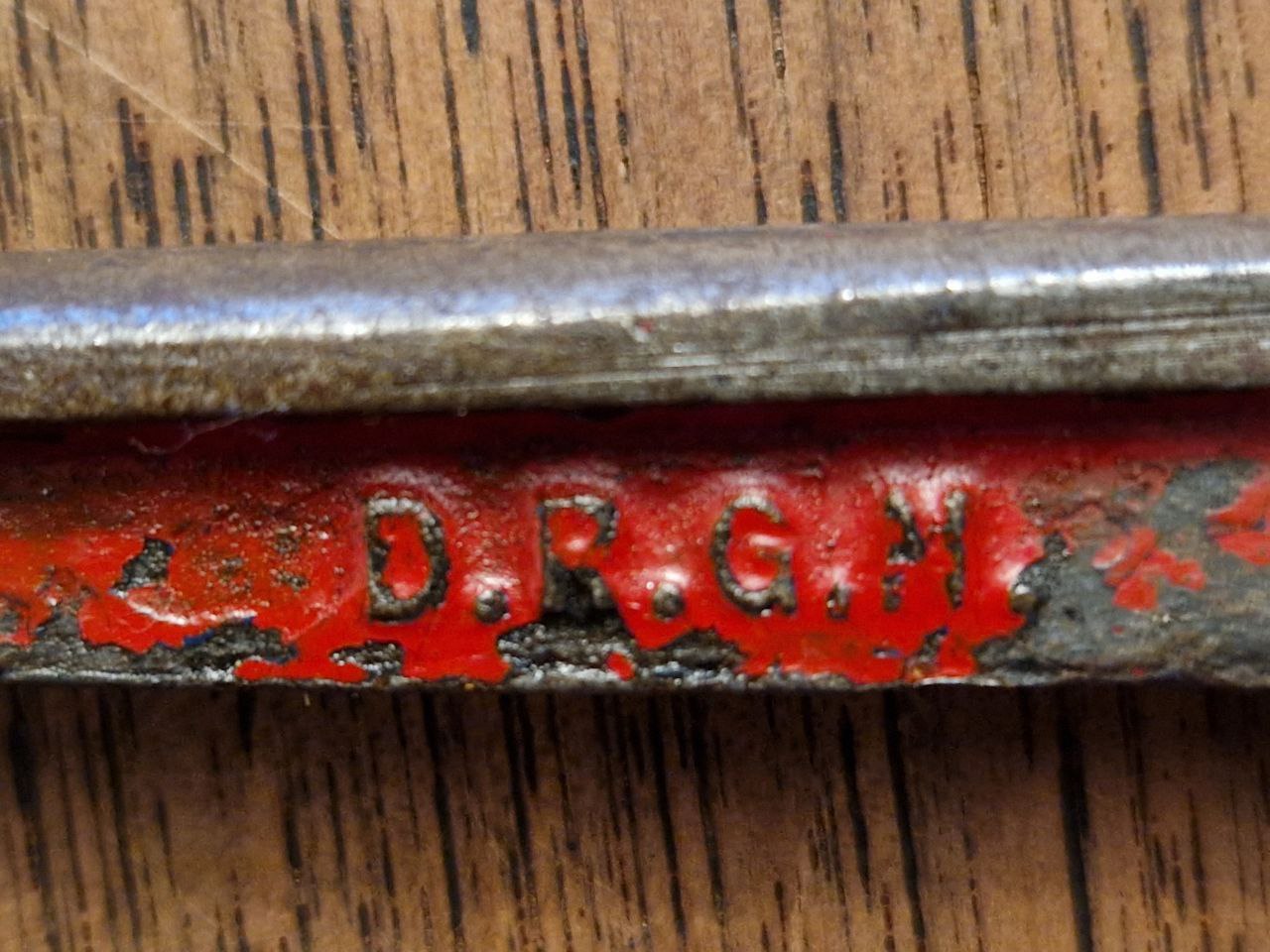 Bild 2: Das ganze Stück mit den Markierungen: "GANZ STAHL" und "D.R.G.M."
