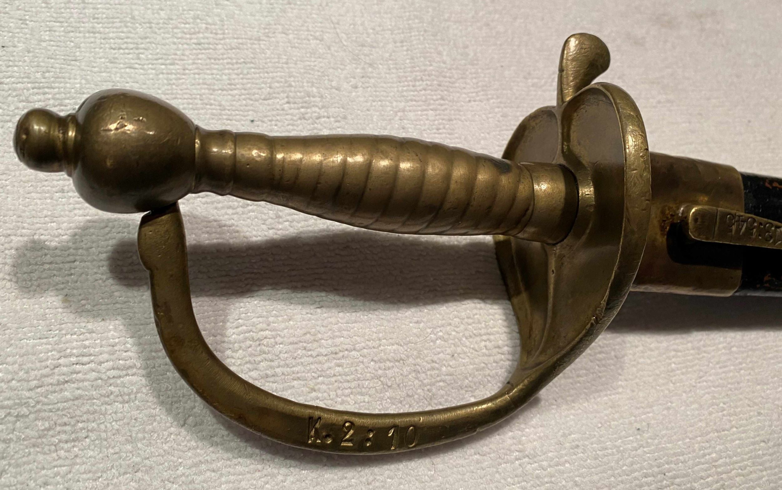 Man kann auch einen sehr ähnlichen im Buch "Das Heerwesen in Brandenburg und Preußen von 1640 bis 1806 DIE BEWAFFNUG" von Heinrich Müller finden. S.209 und wie schon geschrieben, ich kenne noch so ein Teil, bei dem Knauf und Hülse nicht aus zwei Teilen besteht.