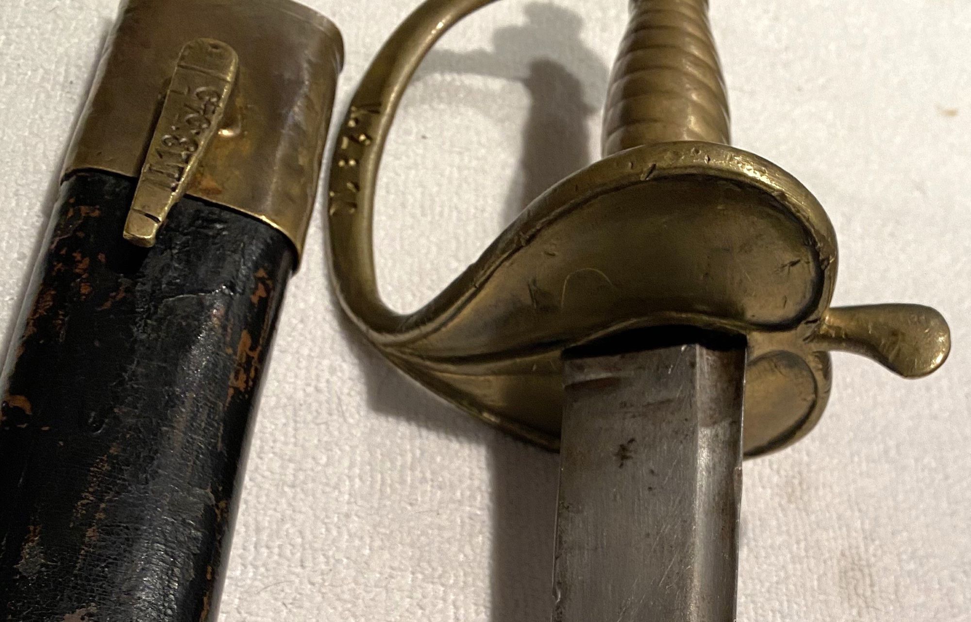 Das Stück ist kein reinrassiges Muster, sondern, soweit man es anhand der Fotos erkennen kann, aus verschiedenen Teilen zusammengesetzt. Der gesamte Griff (Knauf, Griffhülse und -ringe) und vielleicht die Klinge scheinen von einem Infanteriesäbel „M. 1715“ zu stammen, Griffbügel und Stichblatt von einem Infanteriesäbel m/St, bzw. „M. 1816“. Die Scheide entspricht keinem gängigen preußischen Muster.