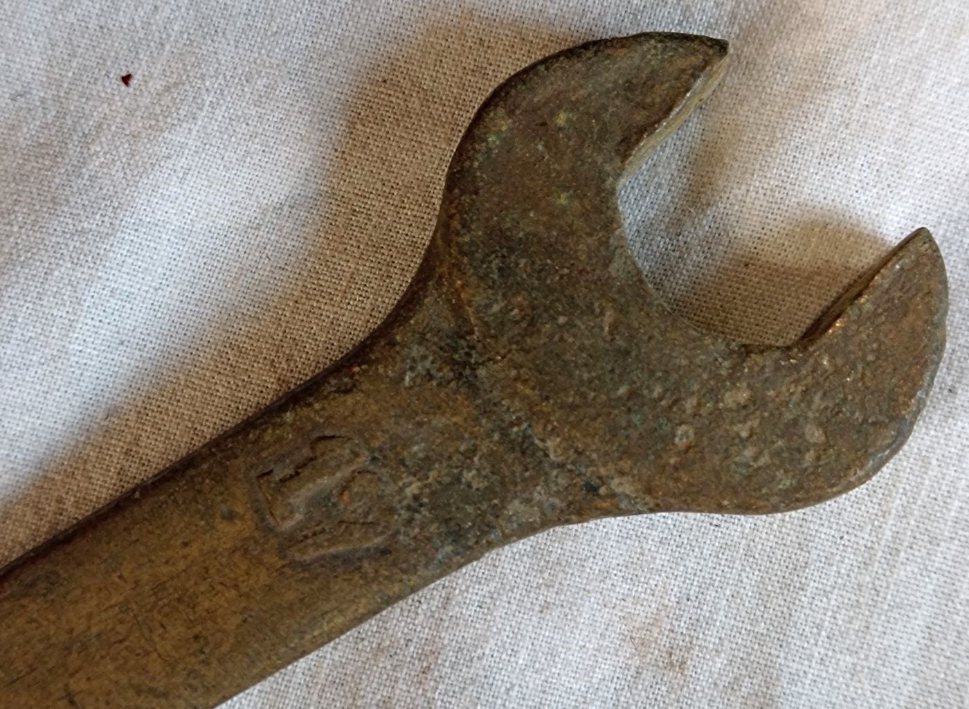 Heute fiel mir auf dem Trödelmarkt ein 24-/30-er Maulschlüssel aus Kupfer-Beryllium in die Hände. Ich weiß nicht warum, aber der musste mit. :D