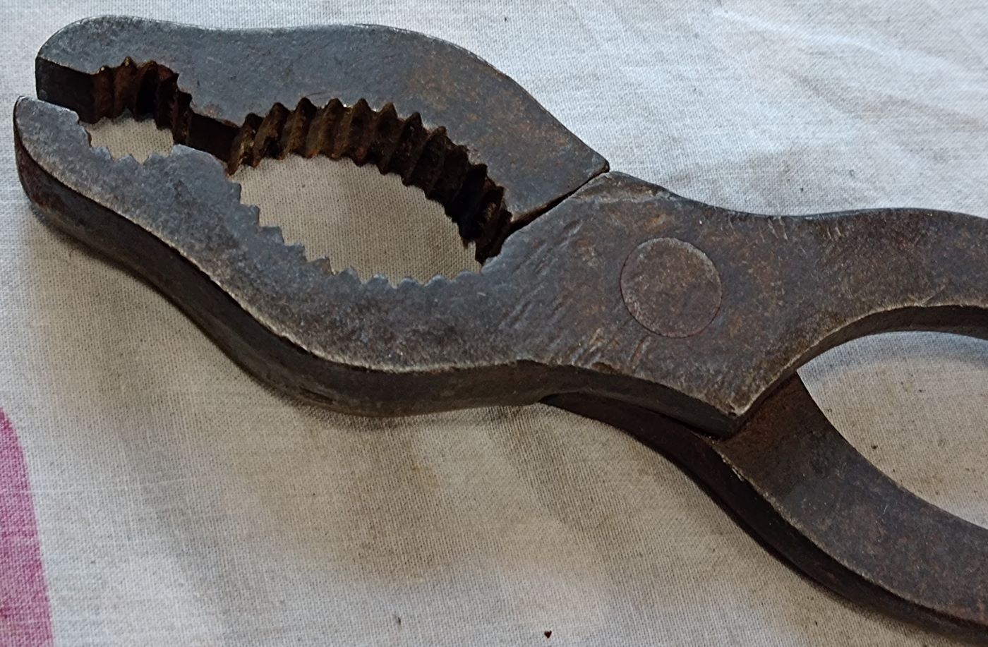 Hier eine Variante der Gasrohrzange mit einer viereckigen Öffnung in der "Schnauze" (Bild 5 und 6)
